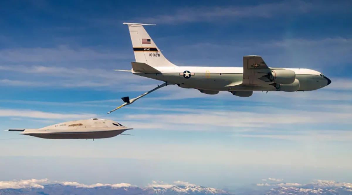 Şəkil "Northrop Grumman" şirkəti tərəfindən təqdim olunub və havada yanacaqdoldurma sınaqları zamanı çəkilib. Şirkətdən bildiriblər ki, istehsal infrastrukturunun yaradılmasına beş milyard dollardan çox vəsait ayrılıb. İlk təyyarələrin 2027-ci ildə Ellsuort aviabazasına daxil olacağı gözlənilir.