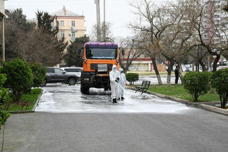 Bakı Şəhər İcra Hakimiyyəti kommunal təsərrüfat xidmətlərinin texnikası əsas küçə və prospektlərin yuyucu maddələrlə yuyulmasını aparıb, əməkdaşlar tərəfindən balansda olan yaşayış binalarında, həyət və yaşayış məhəllələrində, məişət tullantılarının atıldığı konteyner meydançalarının ətrafında əlavə təmizlik işləri görülüb.