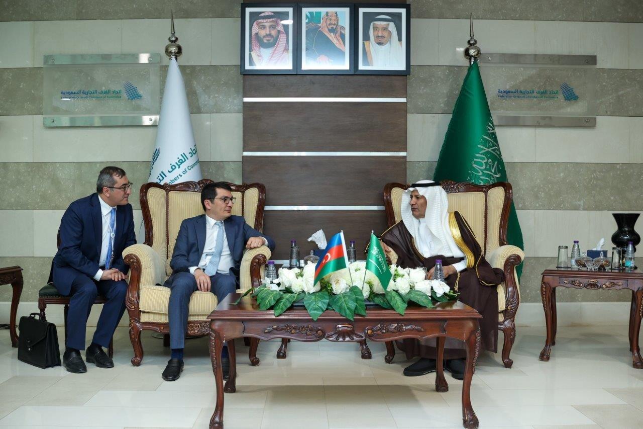 İşgüzar Şuranın iclası çərçivəsində iqtisadiyyat nazirinin birinci müavini Elnur Əliyev Səudiyyə Ərəbistanının Palatalar Federasiyasının sədri Hasan Moejeb Alhvaizi ilə görüşüb. Görüşdə biznes dairələri arasında əməkdaşlıq, qarşılıqlı investisiyaların təşviqi, birgə layihələrin həyata keçirilməsi müzakirə olunub.
