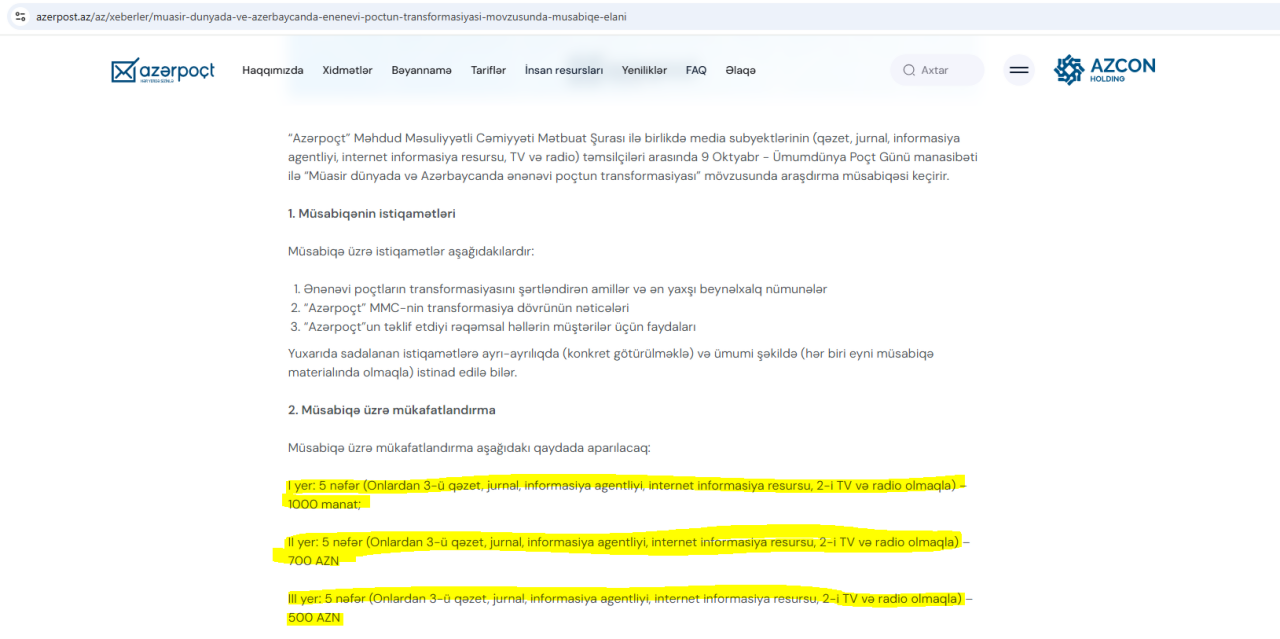 “Azərpoçt”un jurnalistlər üçün müsabiqəsi narazılıq yaratdı - "15 qalib olmalı idi, cəmi 6 oldu" - AÇIQLAMA
