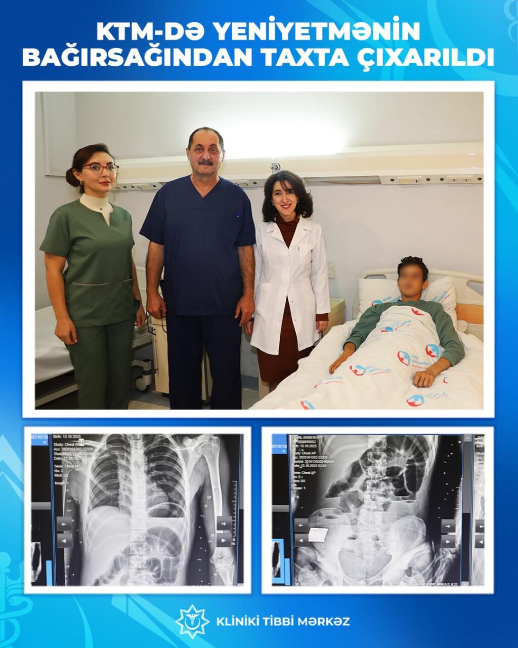 Uşaq cərrahiyyəsi şöbəsinin müdiri İlqar Haqverdiyev və uşaq cərrahı Günay Əmrahlı tərəfindən nazik bağırsaq seqmentinin rezeksiyası, yoğun bağırsağın defektinin tikilməsi əməliyyatı icra olunub.