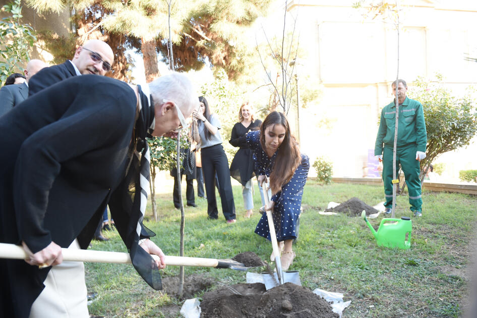 Daha sonra Leyla Əliyevanın iştirakı ilə Mərkəzin terrasında püstə ağacı əkilib.