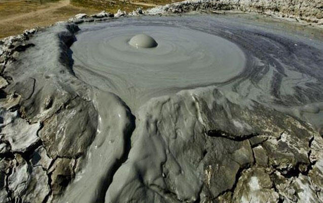 Palçıq Vulkanları Turizm Kompleksindəki vulkanlardan biri hər üç dəqiqədən bir püskürür.