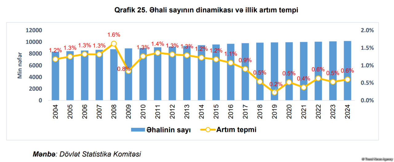 Digər tərəfdən, ən sürətli artım 65 və daha yuxarı yaşda olan əhali qrupunda müşahidə olunacaq. Belə ki, 2024-cü ildə 65 yaşdan yuxarı şəxslərin əhalidə xüsusi çəkisi 9,1 faiz təşkil etdiyi halda, bu göstəricinin 2050-ci ilin sonunadək 18,1 faizə çatacağı gözlənilir. Bundan əlavə, əhalinin iqtisadi rifah, tibbi xidmət, sosial təminatının yüksəlməsi fonunda əhalinin gözlənilən orta ömür uzunluğunun artması gözlənilir ki, bu da öz növbəsində əmək pensiyaçılarının orta pensiya ödənişi müddətinin uzanması və Fondun maliyyə yükünün artırılması ilə nəticələnir. 2024-cü ildə Azərbaycanda orta ömür uzunluğu 74,6 il təşkil edib və mövcud artım tendensiyasının davam edəcəyi halda, BMT-in proqnozlarına əsasən 2050-ci ildə 78,6 il olacağı gözlənilir.