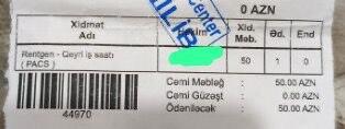 1 saat həkimi gözlədikdən sonra həkim gəldi və rentgen lazım olduğunu bildirdi. Rentgenə görə isə 50 manat ödəniş etdim. Daha sonra gipsin qoyulması üçün isə 40 manat ödəniş etdim.