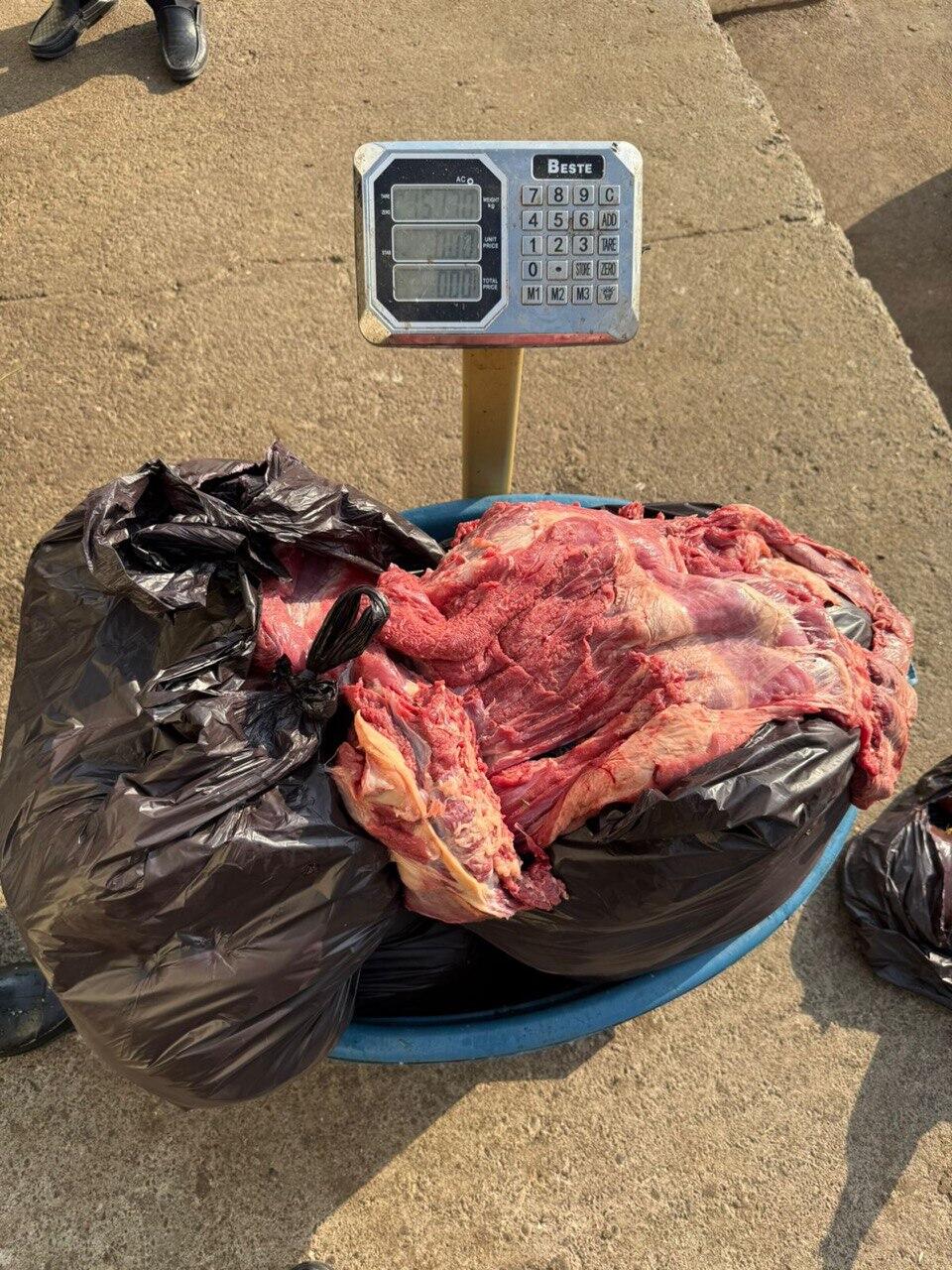 Yoxlama zamanı məlum olub ki, mənşəyi məlum olmayan ət kəsilərək sümükdən ayrılıb və 99 CJ 158 dövlət qeydiyyat nişanlı "Mercedes" markalı avtomobil vasitəsilə Natiq Vaqif oğlu Hüseynov tərəfindən mal əti adı altında satış məqsədilə paytaxt Bakıya aparılıb. Ət antisanitar şəraitdə saxlanılıb.