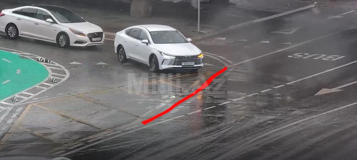 Belə ki, A.Bakıxanov küçəsində C.Cabbarlı küçəsinə dönmə edən sürücülər bütöv xəttin tələbini pozaraq ilk istiqamətdən dönürlər. Qaydaya əsasən isə sürücü biraz irəli gedərək qırıq-qırıq xətlə işarlənmiş yerdən digər hərəkət istiqamətinə keçid etməlidirlər.