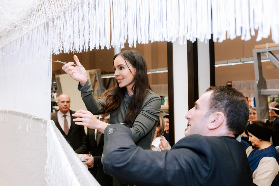 Şuşa məscidi üçün hazırlanmış dairəvi xalçanın kəsilməsi prosesində Heydər Əliyev Fondunun vitse-prezidenti Leyla Əliyeva iştirak edib. Daha əvvəl Leyla Əliyeva İsmayıllı emalatxanasına baş çəkərək xalça ilə yaxından tanış olub, toxucularla vaxt keçirib və tarixi əsərə çevriləcək xalçaya ilmə atıb. Xalçanın son ilmələri məhz Leyla Əliyeva tərəfindən vurulub.