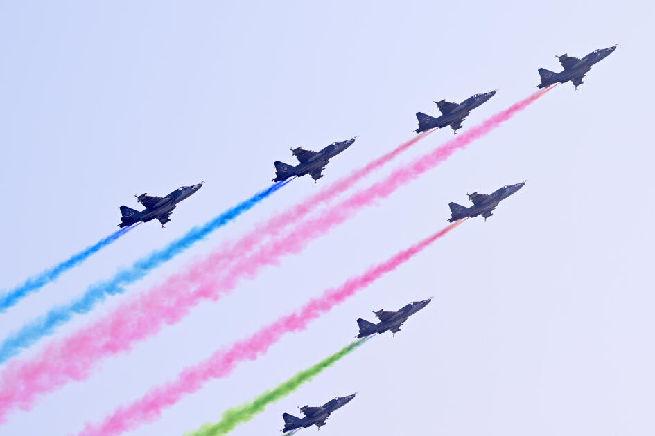 Daha sonra polkovnik-leytenant Aslan Ramazanovun başçılığı ilə "MFİ-17" təlim təyyarələrinin beşliyi səmada dövrə vurub. Ardınca "L-39" təlim təyyarələrinin beşliyi klin düzülüşündə nümayişini davam etdirib. Qrupun rəhbəri "Vətənə xidmətə görə" ordenli polkovnik Əliyar Əsgərov olub. "İL-76" hərbi-nəqliyyat və silahlanmaya yeni qəbul edilmiş "C-27J" yük təyyarələrindən ibarət üçlüyü polkovnik-leytenant Zəfər Fərhadov, "Rəşadət" ordenli polkovnik Ruslan Ələkbərov və "Qarabağ" ordenli polkovnik Vüqar Salahov idarə ediblər. Silahlanmaya yeni daxil olan "JF-17" çoxməqsədli qırıcı təyyarələrinin beşliyi də klin düzülüşündə nümayişini davam etdirib. Qrupa "Vətənə xidmətə görə" ordenli polkovnik Novruz Tahirov başçılıq edib. Türkiyə Hərbi Hava Qüvvələrini təmsil edən "F-16" çoxməqsədli qırıcı təyyarələr beşliyi Bakı səmasında peşəkar uçuş nümayiş etdirib. Beşliyə Albay Nevzat Oflamaz başçılıq edib. Təkmilləşdirilmiş "SU-25-Laçın" hücum təyyarələri beşliyinin başçısı "Qarabağ" ordenli general-mayor Həsən Əlövsədov, 2-ci pilotu isə "Vətənə xidmətə görə" ordenli polkovnik Anar Həsənov olub. Sonuncu - Azərbaycanın Dövlət Bayrağının rənglərini paytaxt səmasında canlandıran "SU-25" hücum təyyarələri qrupuna "Vətənə xidmətə görə" ordenli polkovnik Ruslan Məmmədrzayev başçılıq edib.