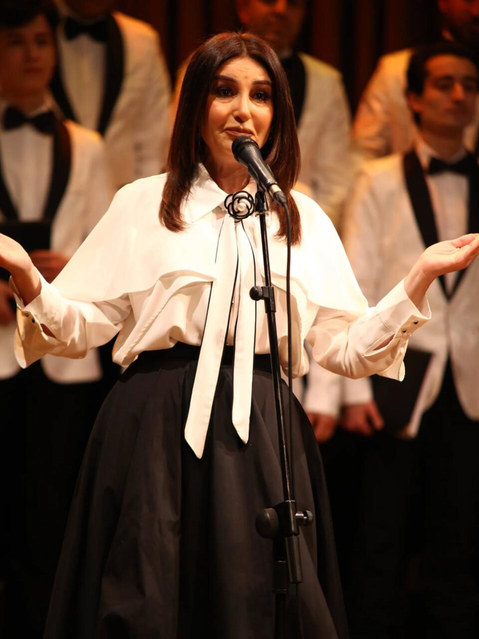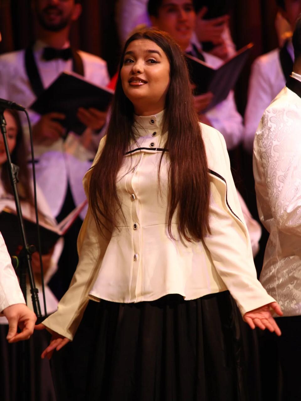 Xorun bədii rəhbəri Təranə Yusifovanın arada bir dirijor yerini tərk edib, bek-vokalçı qismində kollektivə qoşularaq ifalar etməsi də proqrama rəng qatıb.
