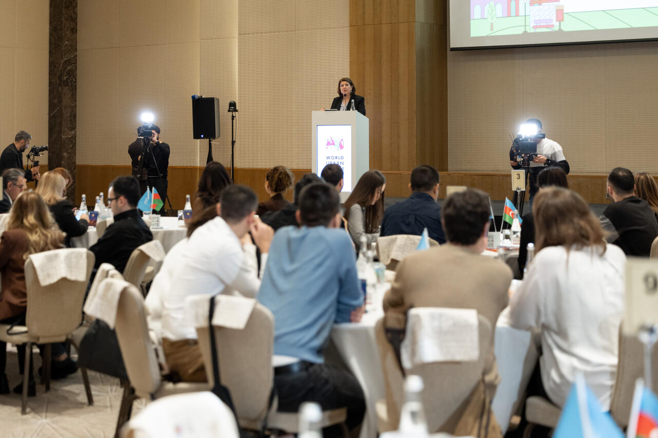 Daha sonra BMT-nin Məskunlaşma Proqramının (UN-Habitat) Azərbaycan üzrə rəhbəri Anna Soave qeyd edib ki, 2026-cı ilin ölkədə "Şəhərsalma və Memarlıq İli" elan olunması və WUF13 tədbirinin Azərbaycanda təşkili beynəlxalq diqqətin regiona yönəlməsinə və konkret, davamlı nəticələrin əldə edilməsinə unikal imkan yaradır. Onun sözlərinə görə, əsas məqsəd forumun nəticələrini milli təcrübəyə inteqrasiya etmək, institusional mexanizmləri gücləndirmək, mütəxəssislərin bacarıqlarını inkişaf etdirmək, uzunmüddətli tərəfdaşlıqlar qurmaq və insan yönümlü şəhərsalma yanaşmasını təşviq etməkdir. Anna Soave, həmçinin vurğulayıb ki, tədbirdə aparılacaq müzakirələr layiqli mənzil təminatı, mobillik, əlçatanlıq, ekoloji dayanıqlılıq və inklüziv şəhərsalma istiqamətlərində irəliləyişlərə təkan verəcək. O, bu prosesdə medianın əhəmiyyətli rol oynadığını diqqətə çatdırıb.