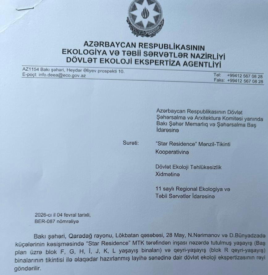 "Ərazi illərlə istifadəsiz qaldığı üçün həm sanitar, həm də təhlükəsizlik baxımından ciddi problemlər mövcud idi. Aparılan bütün işlər qanunvericiliyə uyğun şəkildə və Ekologiya və Təbii Sərvətlər Nazirliyinin Dövlət Ekoloji Ekspertiza Agentliyinin rəsmi müsbət rəyi əsasında həyata keçirilir. Yaşıllıqlar əvvəlcədən identifikasiya olunmuş, hər bir ağac qeydiyyata alınıb. Köçürülməsi mümkün olan ağaclar mütəxəssislərin iştirakı ilə başqa əraziyə transplantasiya edilib".