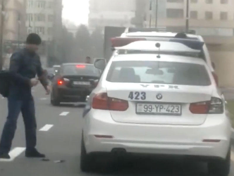 Xatırladaq ki, dünən saat 14.15 radələrində Bakıda, Heydər Əliyev Mərkəzinin yaxınlığında Şahin Mail oğlu Bəylərov çəkiclə Bakı Şəhər Dövlət Yol Polisi İdarəsinə məxsus BMW markalı, 99 YP 423 dövlət qeydiyyat nişanlı avtomobili əzib. Nəticədə maşına ciddi ziyan dəyib.