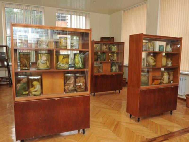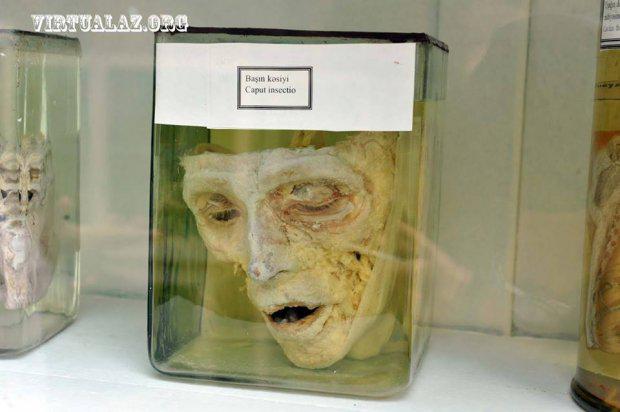 Bu muzeydə ölülər dirilərin işinə yarayır, buranı digər muzeylərdən fərqləndirən əsas cəhət də elə budur. Eksponatların hamısı insan əzaları, müxtəlif orqanlar, anomaliyalarla doğulan uşaqlar, mumiyalardır. Söhbət Tibb Universitetinin Anatomiya muzeyindən gedir. Öncə içəri girməyə bir az tərəddüd etsəm də, sonra öyrəşirəm. Bəlkə də, bu muzeyin birinci zalı - siam əkizləri, siklop uşaqlar, iki-üç başlı, qurbağa gözlü, mutantlar və digər patoloji dəyişikliklərlə doğulan körpələrin saxlandığı zaldan başlamağımızdan irəli gəlirdi. Bələdçimiz professor Ağasəmid İsayev uzun illər burada çalışdığından, onun üçün bu eksponatlar adi əşyalar idi. Elə eksponatlara dərs vəsaiti kimi baxan tələbələr üçün də hər şey adiləşib.