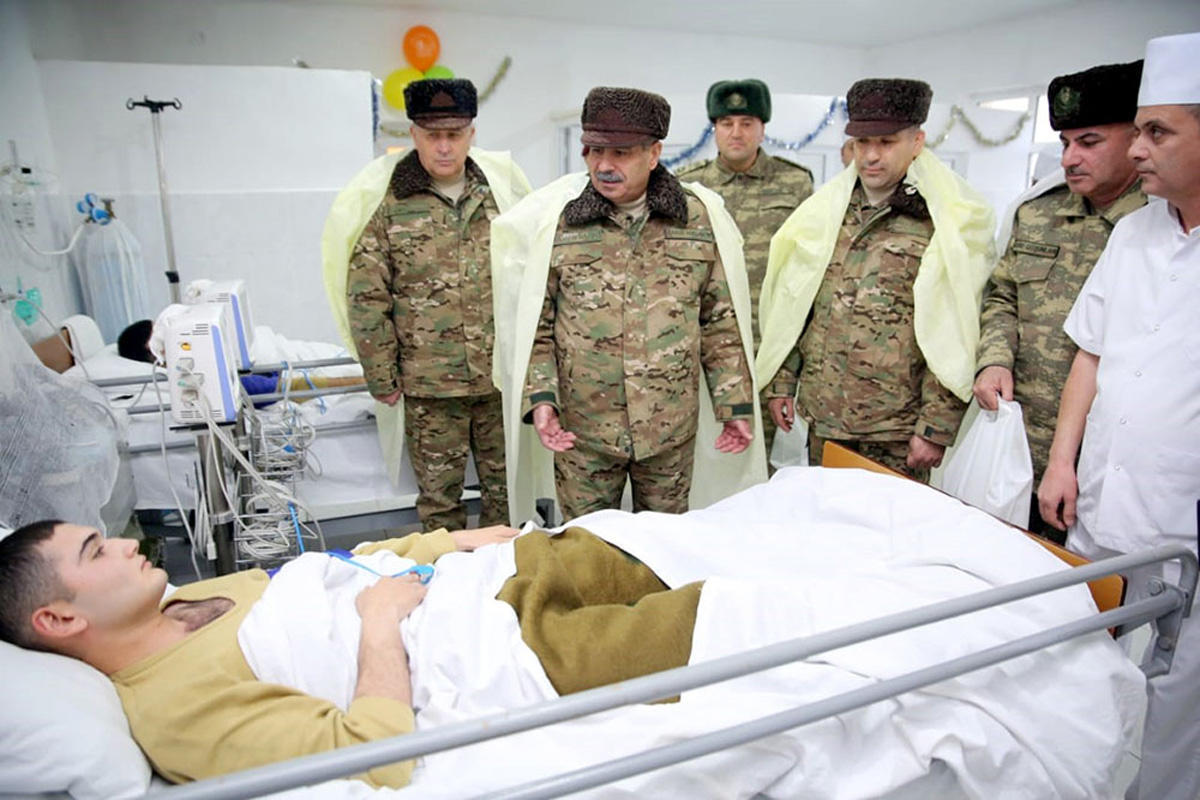 Sonra nazir cəbhə bölgəsində yerləşən hərbi hospitalda müalicə alan hərbi qulluqçularla görüşərək onların səhhəti ilə maraqlanıb. O, hərbi qulluqçulara bayram sovqatları təqdim edib, onların tezliklə sağalaraq xidmət yerlərinə qayıtmalarını arzulayıb.