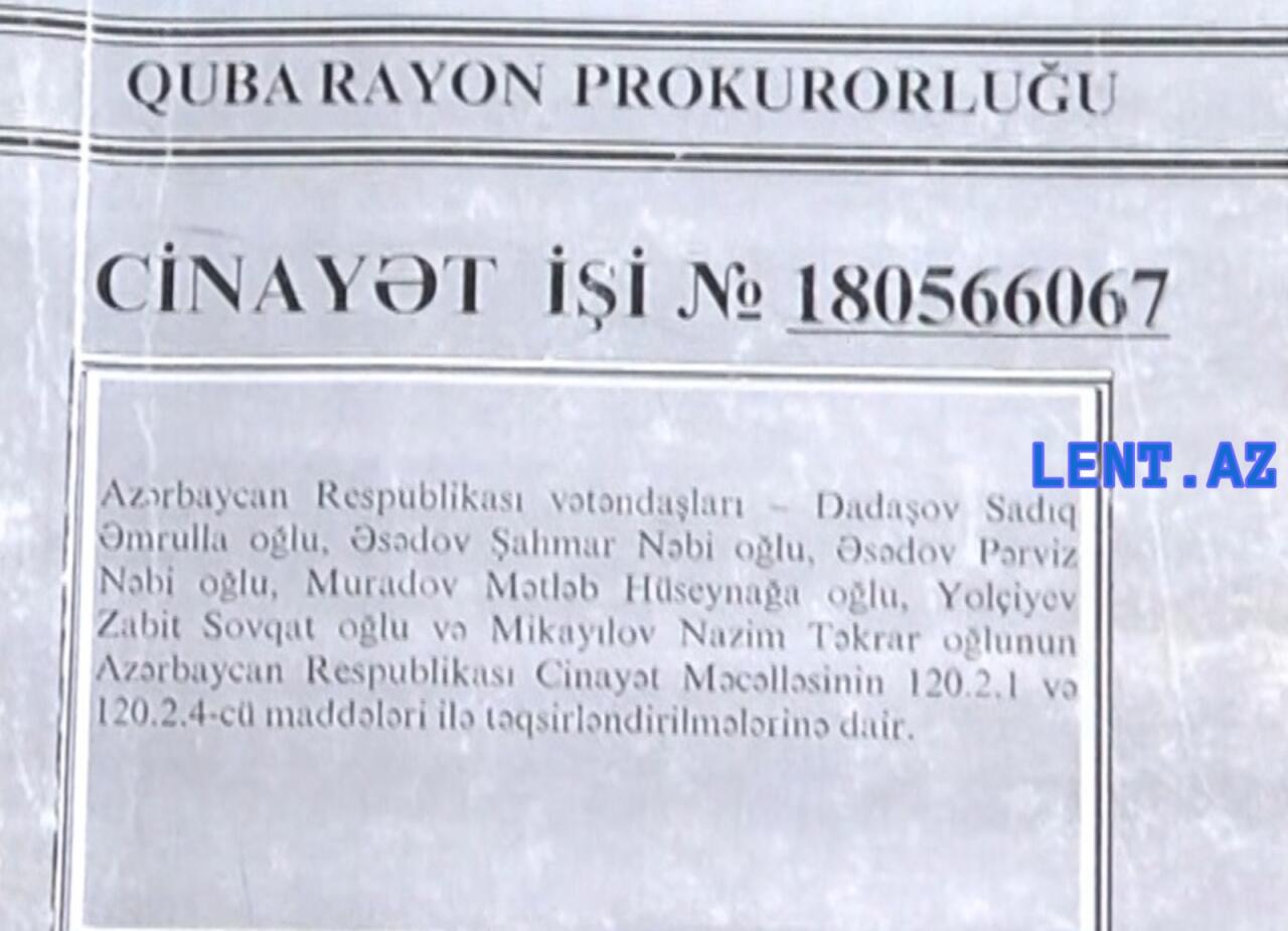 Milli.Az bildirir ki, lent.az məlum cinayət işinin istintaq materiallarını əldə edib.