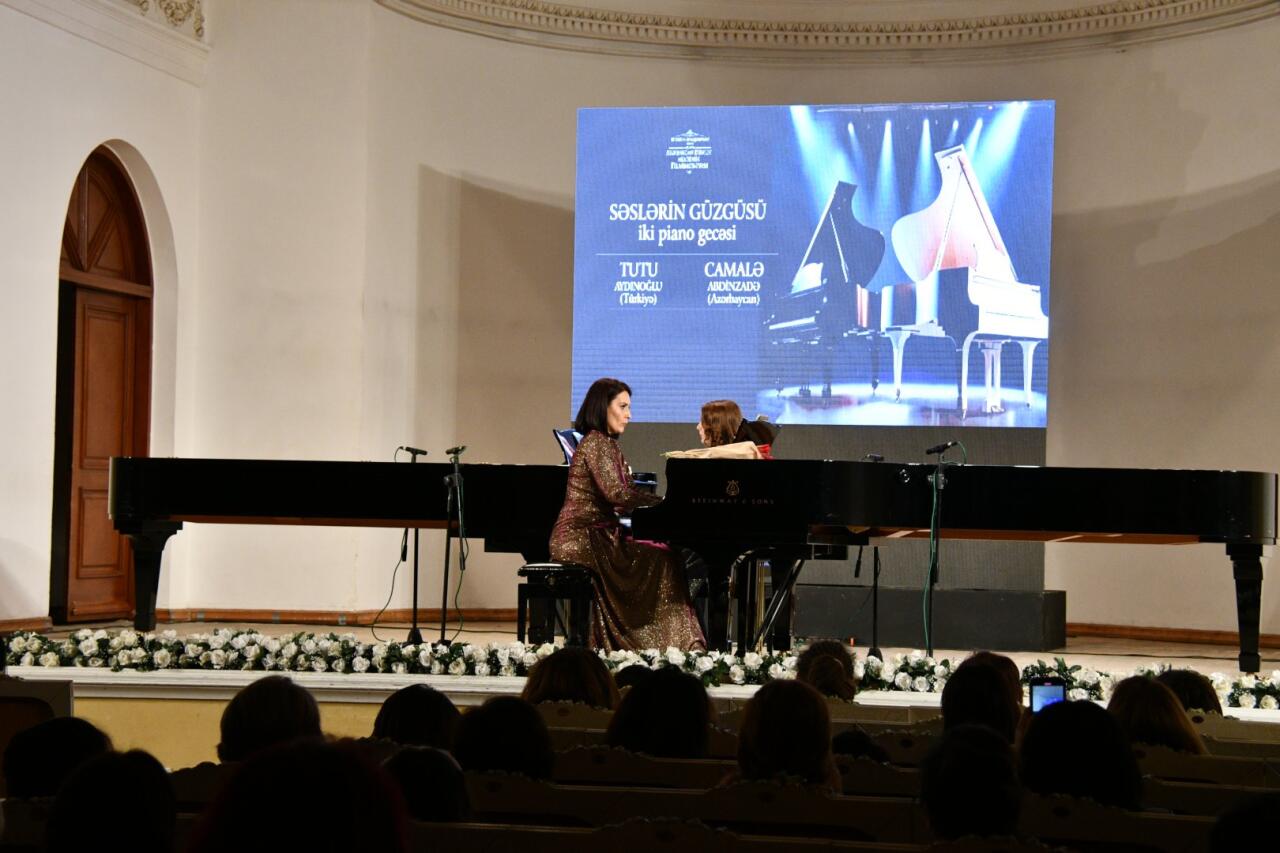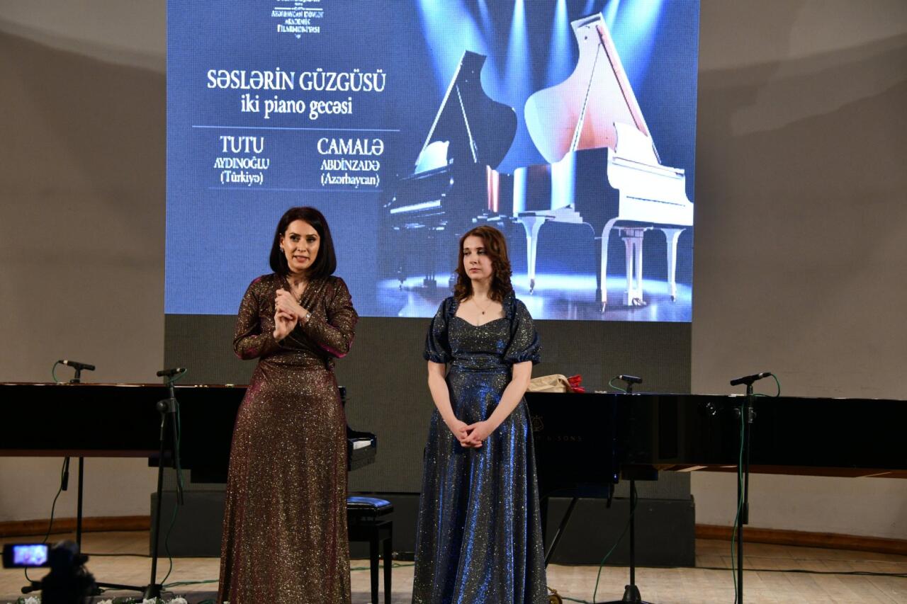 M.Maqomayev adına Azərbaycan Dövlət Akademik Filarmoniyasının səhnəsində musiqi sənətinin incə çalarlarını özündə birləşdirən "Səslərin güzgüsü" adlı möhtəşəm piano gecəsi baş tutub. Bu xüsusi konsert proqramında qardaş ölkələri təmsil edən istedadlı pianoçular - Tutu Aydınoğlu (Türkiyə) və Camalə Abdinzadə (Azərbaycan) çıxış edib.