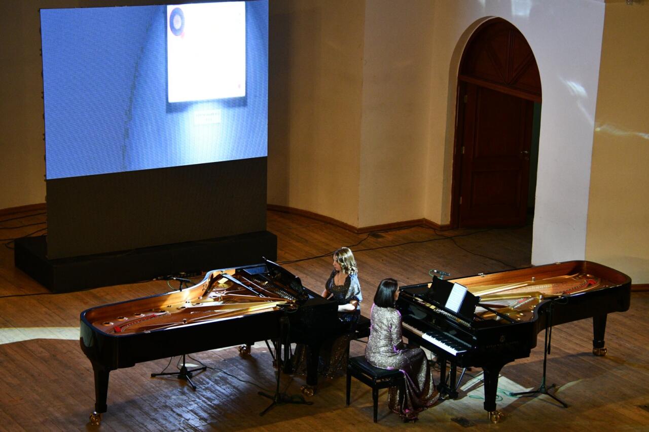Tədbirin aparıcısı Renara Şəmsiyeva ifaçıların musiqi karyerası və yaradıcılıq uğurları haqqında tamaşaçılara geniş məlumat verib. Ardınca pianoçuların ifasında klassik və müasir musiqinin sehrinə bürünən səhnə, incəsənətin müxtəlif janrlarını bir araya gətirən ecazkar bir axşama çevrilib. Proqramda F.Liszt 2 (cis-moll, S.244) və 5 (e-moll, S.244) saylı "Macar rapsodiyası", D.Şostakoviç iki piano üçün Konsertino, A.Marquez`in 2 saylı "Danzon", C.Saint-Seans "Heyvanların karnavalı" süitası səslənib.