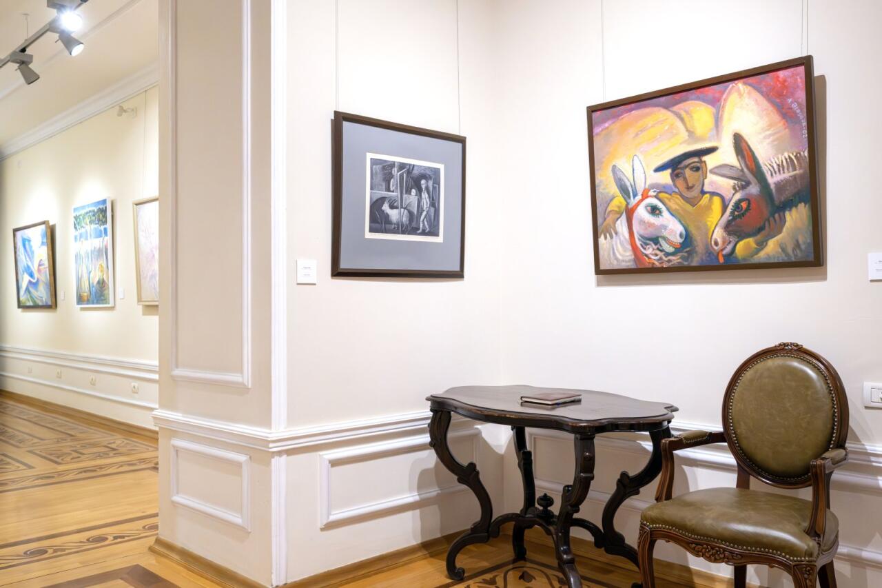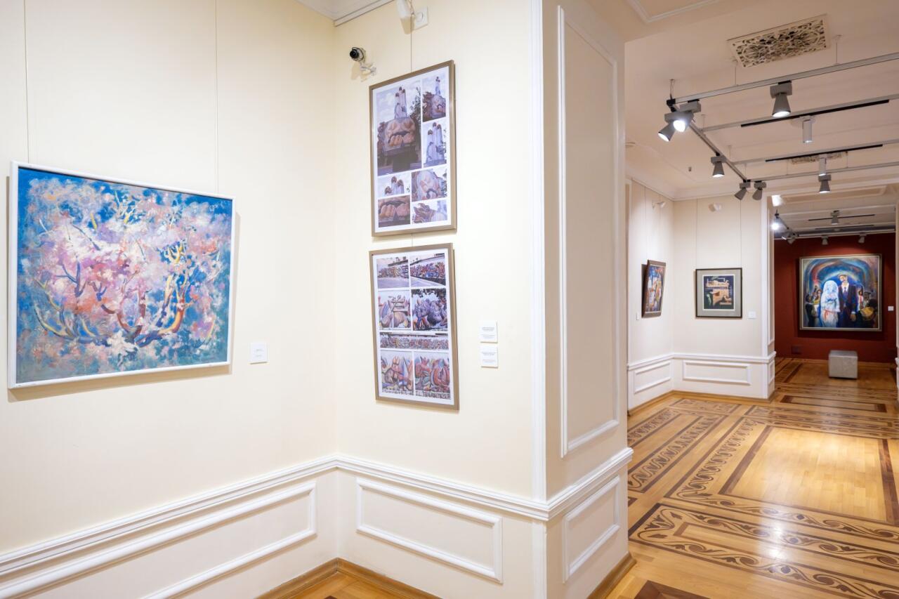 Ekspozisiyada yer alan Azərbaycan Milli İncəsənət Muzeyinin kolleksiyasına aid qurama və samovarlar rəssamın xalqın milli ruhunu ifadə edən əsərləri ilə xüsusi ahəng yaradır.
