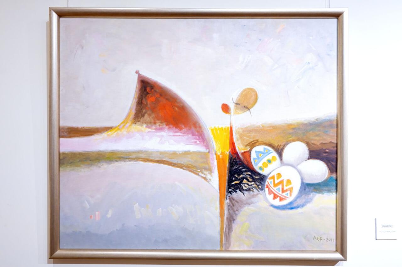 Arif Ələsgərovun məşhur tabloları sırasında olan "Pəhləvan" əsərinin həm ənənəvi, həm də vizuallaşdırılmış təqdimatda-animasiya formasında nümayişi sərginin digər maraqlı hissələrindəndir.