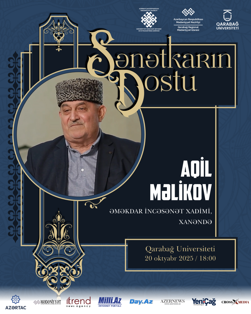 MEMİM-in "Sənətkarın dostu" layihəsi üzrə oktyabrın 20-də Qarabağ Universiteti İncəsənət fakültəsinin dəstəyi ilə bu təhsil ocağında xanəndə, pedaqoq, Əməkdar incəsənət xadimi Aqil Məlikovla görüş, oktyabrın 21-də isə "Azərbaycan mədəniyyətində Üzeyir Hacıbəyli fenomeni" mövzusunda elmi-praktik seminar keçiriləcək. Tədbir dahi bəstəkar, Azərbaycan professional musiqisinin banisi, musiqişünas və pedaqoq Üzeyir Hacıbəylinin 140 illik yubileyi münasibətilə gerçəkləşəcək.