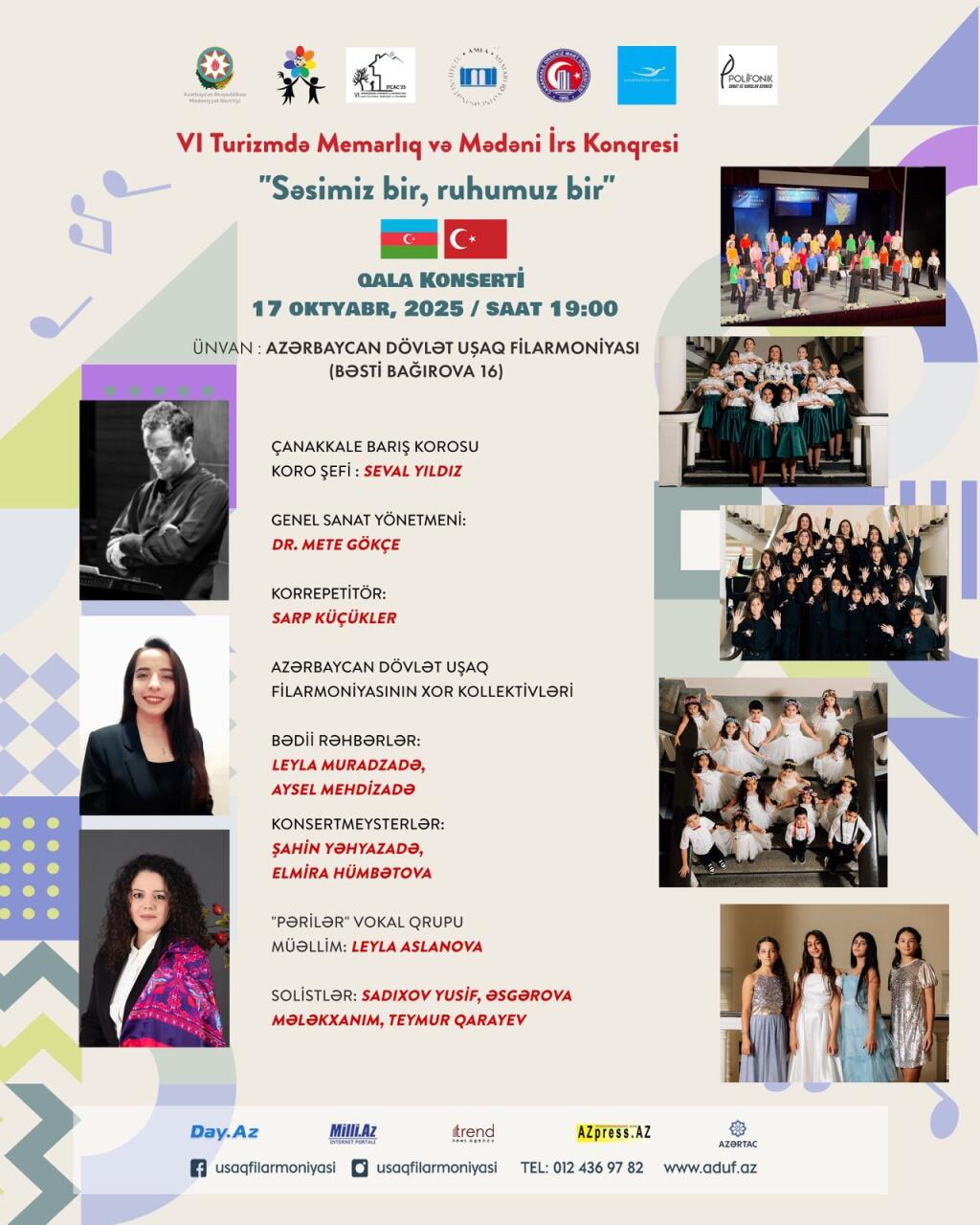 VI. Turizmdə Memarlıq və Mədəni İrs Konqresi çərçivəsində 17 oktyabr saat 19:00-da Çanakkale Barış Korosu və Azərbaycan Dövlət Uşaq Filarmoniyasının birgə iştirakı ilə unudulmaz musiqi axşamı baş tutdu.