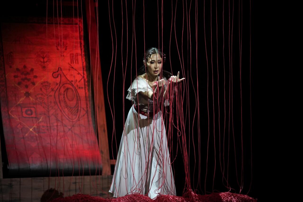 Tamaşaçılar ilk dəqiqələrdən başqa dünyaya aparılır - sənətin iplikləri ilə Şərq və Qərb birləşir, millətə məxsus motivlərdən ilhamlanan melodiyalar səhnədə qədim əfsanənin canlandığı hissini yaradır. Hər rəqs epizodu qədim xalçanın naxışını xatırladır - çoxqatlı, gizli mənalar və incə keçidlərlə dolu. Üstəlik, möhtəşəm rejissor qərarları, səhnə dekorasiyalarının da rəqsçilərlə birlikdə səhnədə hərəkət etməsi, xoreoqrafiyanın sehrinə birləşir. Hadisə yalnız səhnədə deyil, səhnənin üzərində - xüsusi yaradılmış platformada da baş verir ki, bu da məkan və çoxölçülülük hissini gücləndirir.