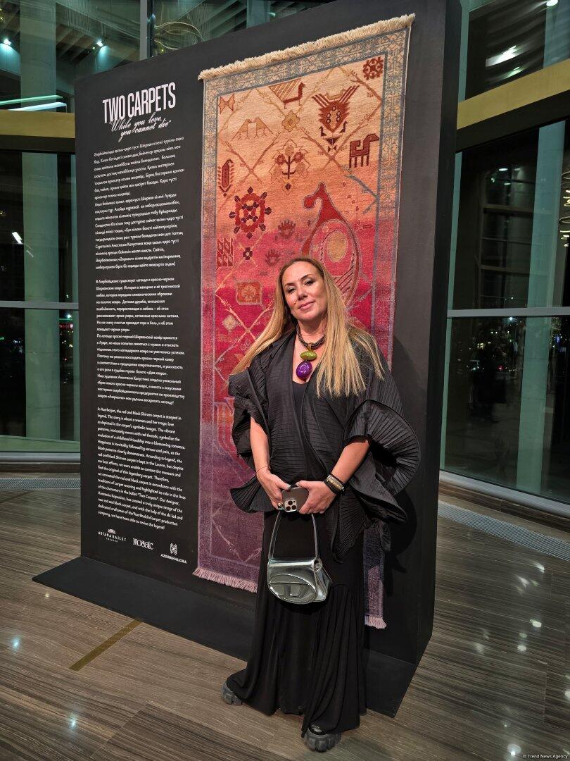 "Xalqların mədəniyyətlərinin, teatr və dekorativ sənətin bu qədər gözəl vəhdəti ən yüksək qiymətə layiqdir. Layihə üzərində iş bir neçə ay əvvəl başladı. Bizə Azərbaycanın qədim xalçaçılıq sənətinə həsr olunmuş bir hekayə təqdim olundu. A. Kapustinanın müəllifliyi ilə hazırlanmış eskiz əsasında qısa müddətdə böyük komandamız unikal, tək nüsxədə bir xalça toxudu. Bu xalça ekspozisiyada nümayiş olunur və sanki teatr hadisəsinin bir iştirakçısına çevrilib. Burada həmçinin 'Azərxalça'nın zəngin kolleksiyasına daxil olan nadir nümunələr də təqdim olunub ki, Qazaxıstan tamaşaçıları bizim xalçaçılıq sənətimizlə yaxından tanış ola bilsinlər. Əminəm ki, 'İki xalça' baleti böyük uğurla dünyanın müxtəlif səhnələrində, eləcə də Azərbaycanda nümayiş etdiriləcək," - deyə Əsmər Babayeva bildirib.