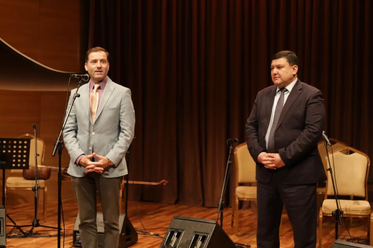 Konsertdən əvvəl Beynəlxalq Muğam Mərkəzinin direktoru, Əməkdar artist, Özbəkistanın mədəniyyət elçisi Sahib Paşazadə və Özbəkistan Dövlət Sənət və Mədəniyyət İnstitutunun rektoru, professor Nodirbek Seyfullayev çıxış ediblər.