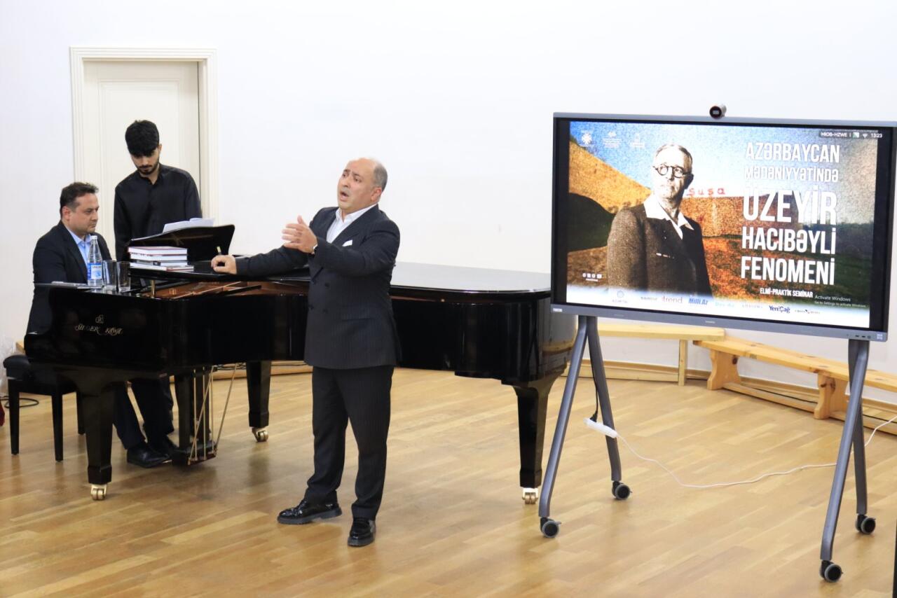 Seminarda Qarabağ Universiteti İncəsənət fakültəsinin dekanı bəstəkar Türkər Qasımzadə və MEMİM-in direktor vəzifəsinə icra edən sənətşünaslıq üzrə fəlsəfə doktoru, dosent Vüqar Hümbətov giriş sözü söyləyiblər. Qeyd olunub ki, seminarın məqsədi müasir Azərbaycan professional musiqisinin banisi olan Üzeyir Hacıbəylinin zəngin yaradıcılıq irsini gənc nəsillərə çatdırmaqla onları maarifləndirməkdən ibarətdir. Bildirilib ki, Üzeyir Hacıbəyli fenomeni bir əsrdən çoxdur mədəniyyətimizin inkişafına öz töhfəsini verir. Dahi bəstəkarın musiqi irsi dünya miqyasında Azərbaycan mədəniyyətinin zənginliyini nümayiş etdirir.