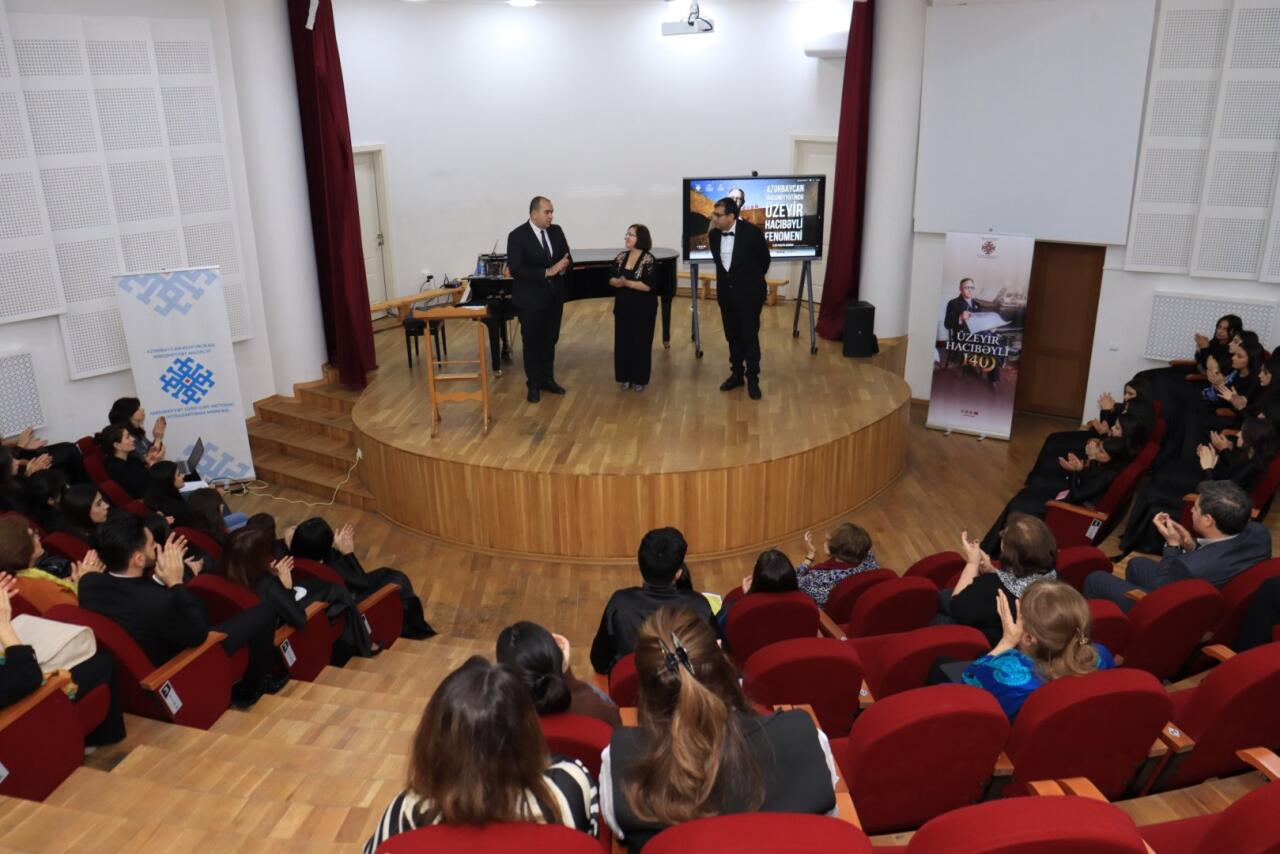 Dahi bəstəkar, musiqişünas alim, pedaqoq, publisist, dramaturq, ictimai xadim Üzeyir Hacıbəylinin 140 illiyinə həsr olunan tədbirdə universitetin professor-müəllim heyəti və tələbələri iştirak ediblər.
