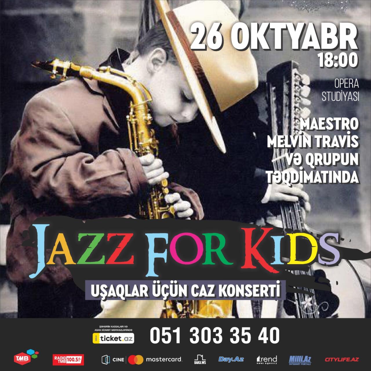26 oktyabr saat 18.00-da Bakıda Opera Studiyasının səhnəsində maestro Melvin Trevisin təqdimatında həm əyləncəli, həm də maarifləndirici layihəsi olan "Uşaqlar üçün caz" konserti olacaq.