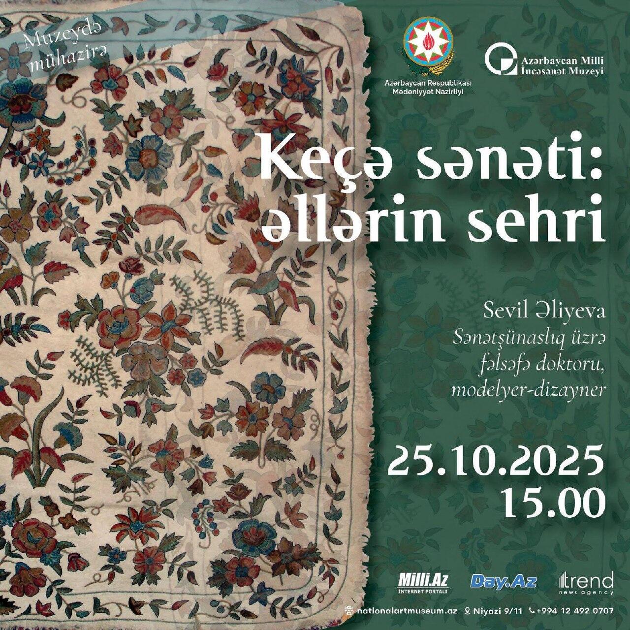 Mühazirəni sənətşünaslıq üzrə fəlsəfə doktoru, modelyer-dizayner Sevil Əliyeva təqdim edib. Tədbir qədim keçə sənətinin tarixi, yaranma prosesi və müasir tətbiq sahələrinə həsr olunub.