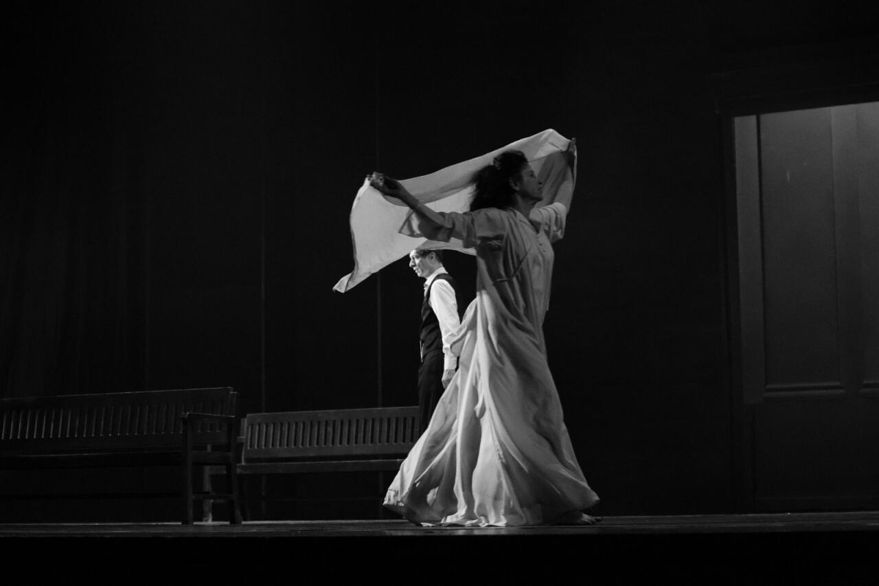 "Anna Karenina" da "Müharibə və Sülh" kimi musiqi-plastik refrenlər üzərində qurulub; hər qəhrəmanın özünəməxsus vizual və intonasiya xətti var. Səhnə tərtibatı minimalizmi ilə seçilir: hadisələr yığcam qara-ağ məkanda cərəyan edir.