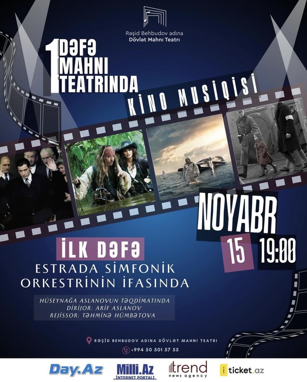 Rəşid Behbudov adına Azərbaycan Dövlət Mahnı Teatrında "Bir dəfə Mahnı Teatrında" adlı musiqili gecə keçirilib. Tədbir teatrın Estrada Simfonik Orkestrinin ifasında kino musiqisi nümunələri əsasında hazırlanmış ilk konsert olub. Konsert dünya kino musiqisinin 130 illiyinə həsr edilib.