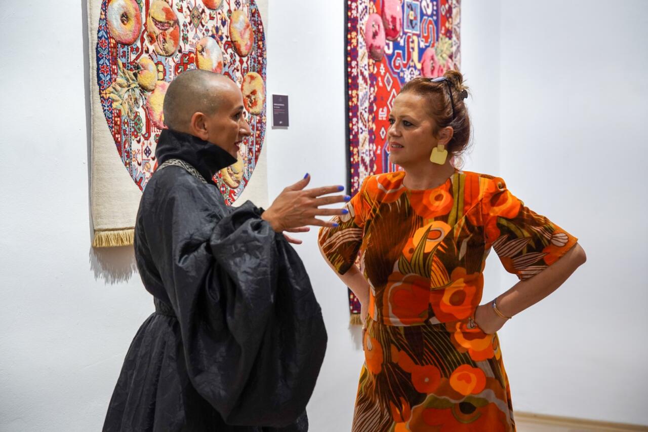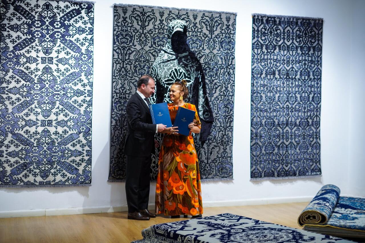 "Əlləriniz var olsun!" xalça kolleksiyasına "Azərxalça" ASC-nin emalatxanalarında toxunan Qarabağ, Quba və Şirvan xalçaçılıq məktəblərinə aid ənənəvi xalçalarla yanaşı, müxtəlif xüsusi kolleksiyalardan əsərlər də daxildir. Bunların sırasına "Azərxalça" ASC-nin Rəşad Ələkbərovla ortaq "44" kolleksiyasından bir, Aydan Salahova ilə "Yaddaşın memarı" və "Qadın" kolleksiyalarından iki, Faiq Əhmədlə ortaq layihədən bir, gənc rəssam Samirə Allahverdiyeva ilə "Nar simfoniyası" kolleksiyasından 3 eksklüziv xalça və "AFFFAIR" ilə əməkdaşlıqdan Rüfət İsmayılın iki - "Naxçıvan" və "Qarabağ" xalçaları daxildir. Bundan əlavə, sərgidə öz əsərlərində Şərqlə Qərbi birləşdirən və bununla da sərhədləri yox etməyə çalışan alban rəssam Xhevahir Kolgjinin Cevahir Kolqyinin də iki xalçası nümayiş olunacaq.