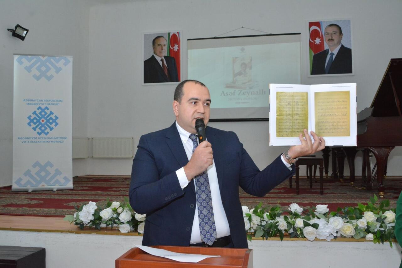 Tədbirdə MEMİM-in direktoru vəzifəsini icra edən sənətşünaslıq üzrə fəlsəfə doktoru, dosent Vüqar Hümbətov, Musiqi Kollecinin direktoru Əməkdar incəsənət xadimi, Asəf Zeynallı irsinin tədqiqatçısı, professor Nazim Kazımov, "Azərnəşr"in baş redaktoru, Əməkdar jurnalist Əlövsət Ağalarov çıxış ediblər. Azərbaycan bəstəkarlıq məktəbinin görkəmli nümayəndəsi olan Asəf Zeynallının (1909-1932) musiqi mədəniyyəti salnaməmizdəki yerindən danışılıb, nəşrin əhəmiyyəti vurğulanıb. Kitab bəstəkarın irsinin təbliğinə mühüm töhfə kimi səciyyələndirilib.