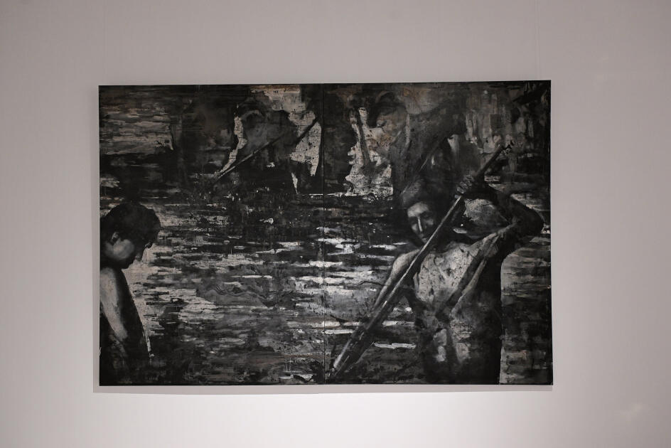 Vüsalə Ağarazıyeva "Sahə" əsəri neft bumunun dövrünə aid tarixi-sənədli obrazlara əsaslanır: neftin içində dizə qədər dayanan, bədənlə maddə arasında sərhədin itdiyi ağır və yapışqan mühitdə çalışan insanlar. Rəssamın sahə adlandırdığı bu məkanda insan və neft eyni varlığın elementlərinə çevrilir. Bu monumental rəsm əsəri pafos və idealizasiya iddiası daşımır. Rəssam insanın fiziki, bədən təcrübəsi vasitəsilə baş verənləri qəbul edərək tarixi prosesə birbaşa daxil olmasına diqqət yönəldir.