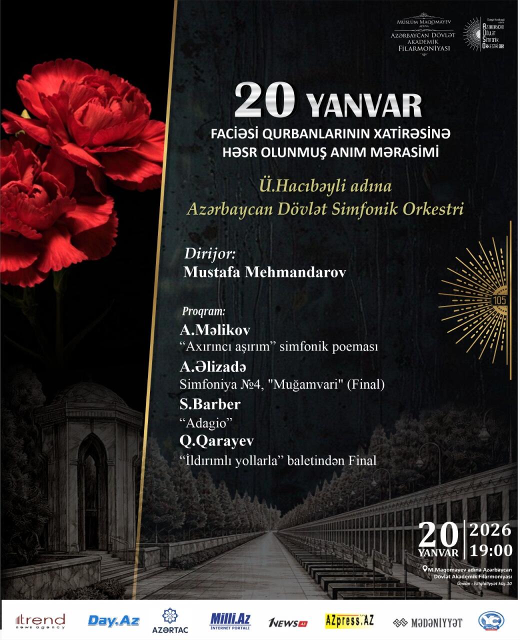 Anım gecəsində dirijor Mustafa Mehmandarovun rəhbərliyi ilə Üzeyir Hacıbəyli adına Azərbaycan Dövlət Simfonik Orkestrinin ifasında səslənən əsərlər faciənin ağrı-acısını, xalqın mənəvi gücünü və yaddaşlarda yaşayan qəhrəmanlıq ruhunu musiqi dili ilə ifadə edib.
