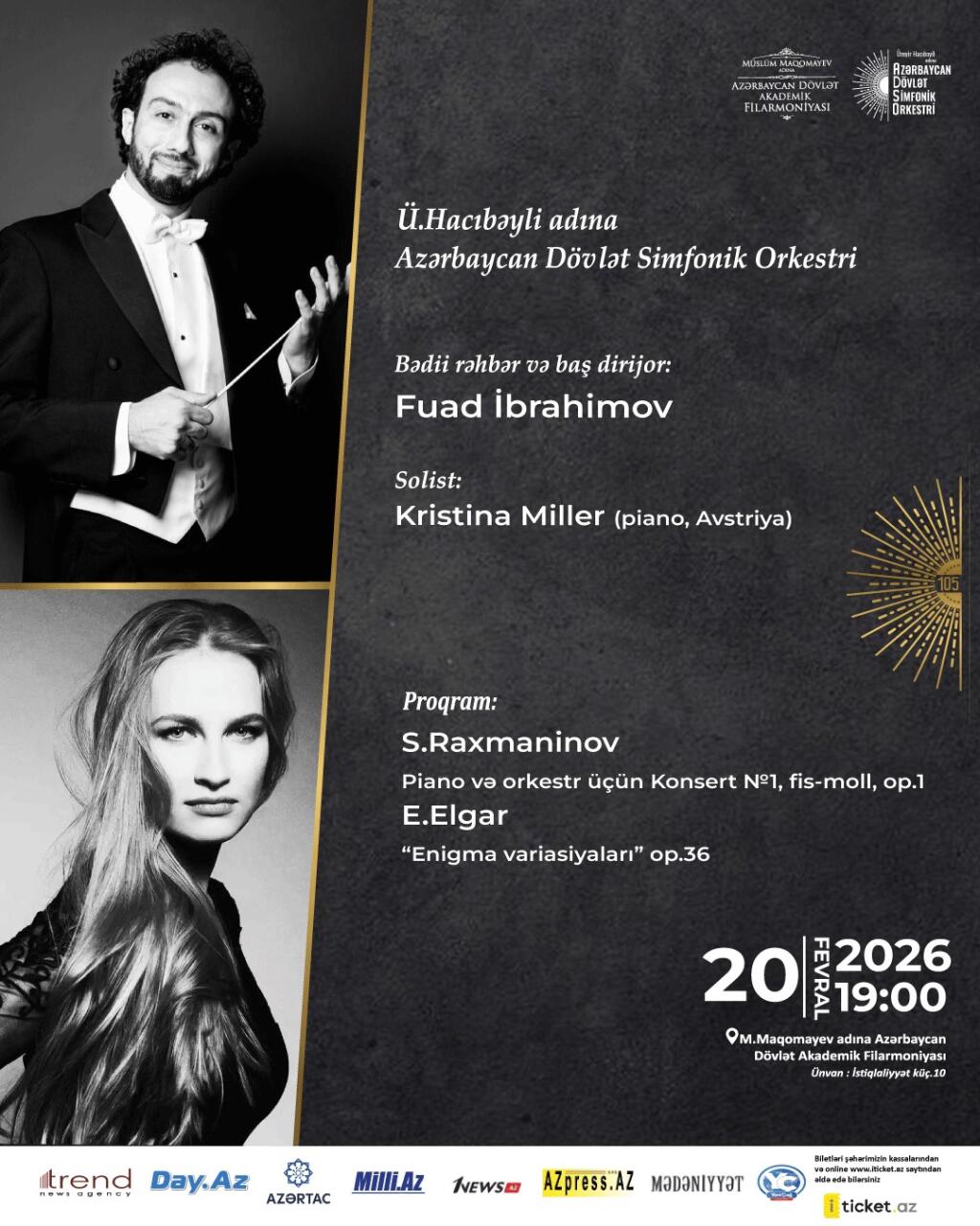 20 fevral tarixində M.Maqomayev adına Azərbaycan Dövlət Akademik Filarmoniyasının səhnəsində Ü.Hacıbəyli adına Azərbaycan Dövlət Simfonik Orkestrinin müşayiəti, bədii rəhbər və baş dirijor Əməkdar artist Fuad İbrahimovun rəhbərliyi ilə parlaq musiqi gecəsi keçirildi.