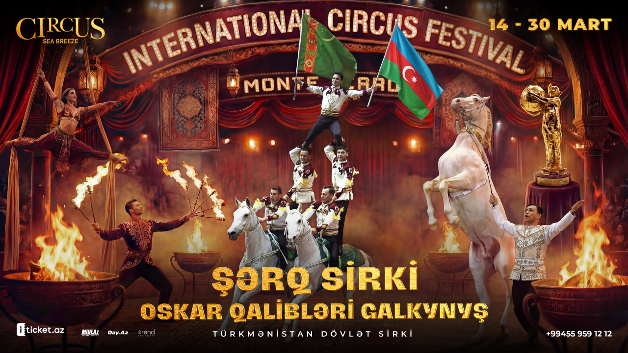 Bakıda, Circus Sea Breeze arenasında Türkmənistan Dövlət Sirkinin əfsanəvi "Galkynyş" qrupu - 2025-ci il Monte-Karlo Beynəlxalq Sirk Festivalının baş mükafat qalibləri ilə möhtəşəm "Şərq Sirki" təqdim olunacaq.