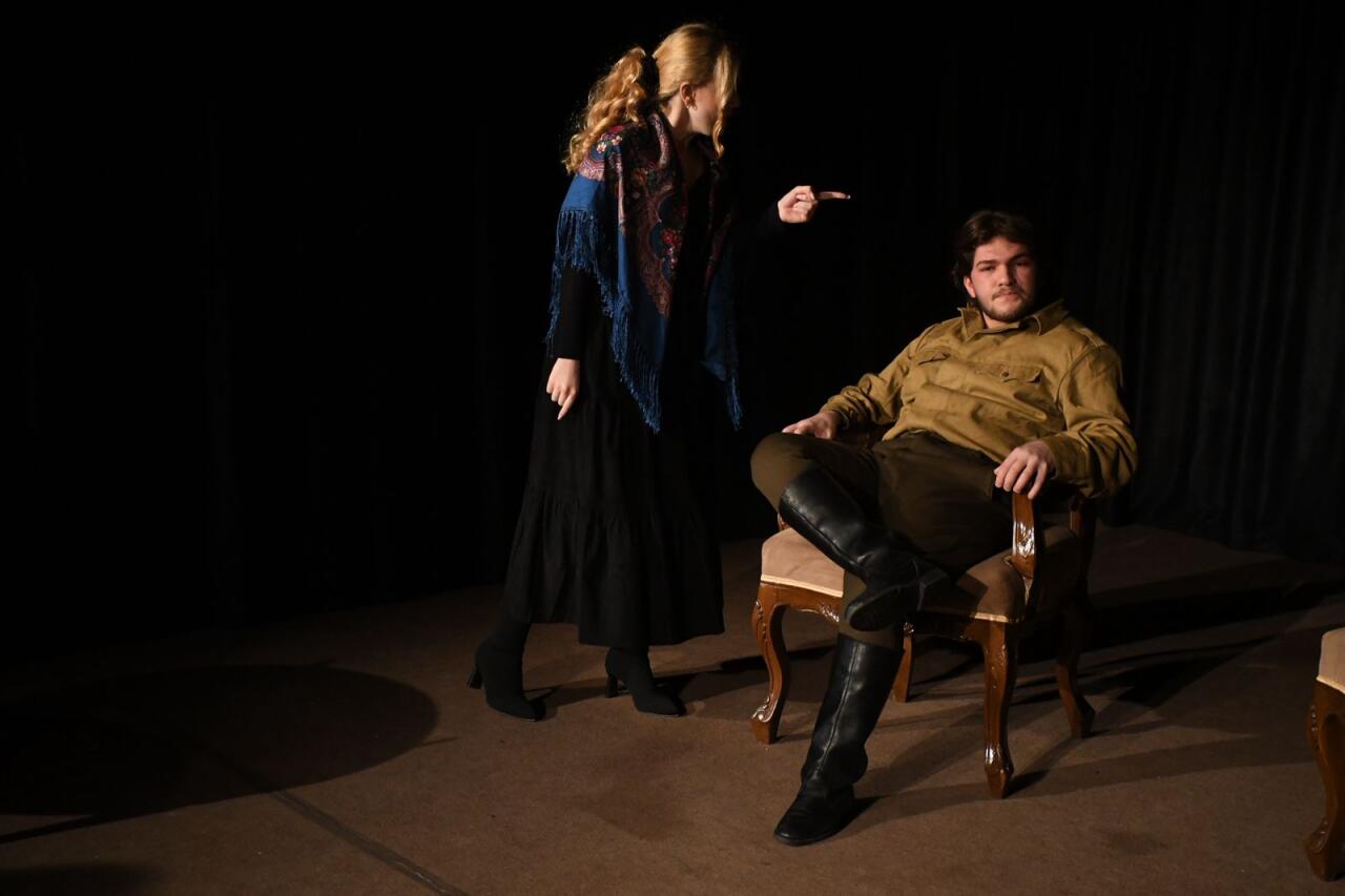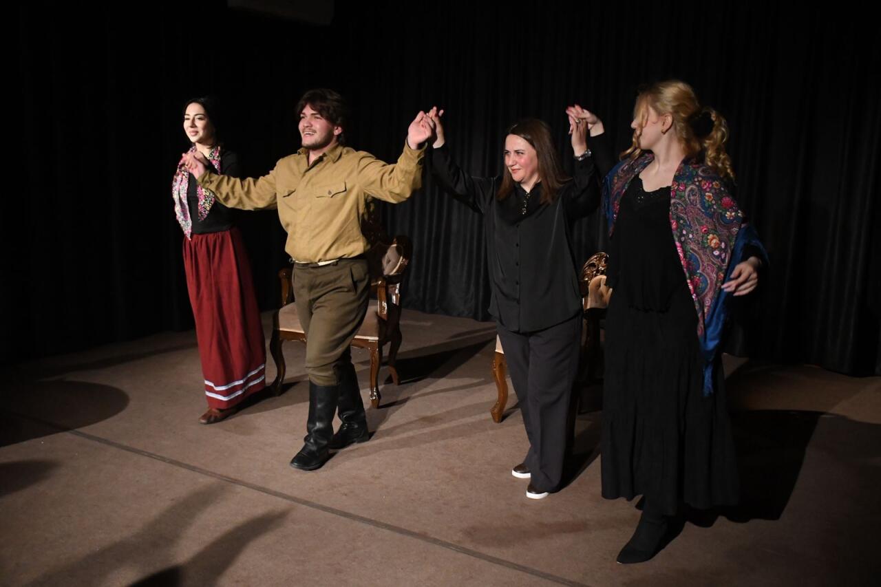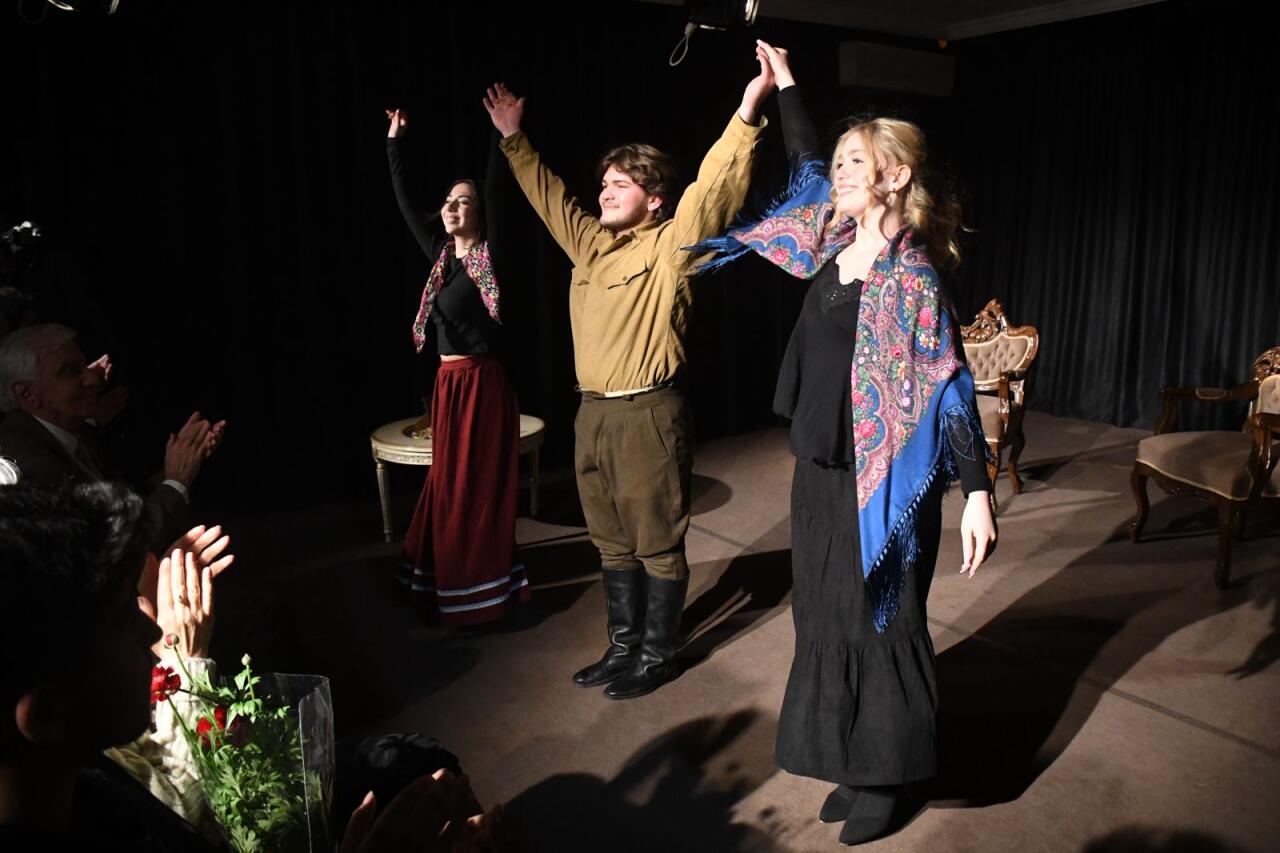 Səhnə əsərində İncəsənət Universitetinin tələbələri Hüseyn Quluzadə (Qriqori Stepanoviç Smirnov), Türkel Ələsgər (Yelena İvanovna Popova), Nərmin Ağayeva (Anfisa) iştirak edirlər.