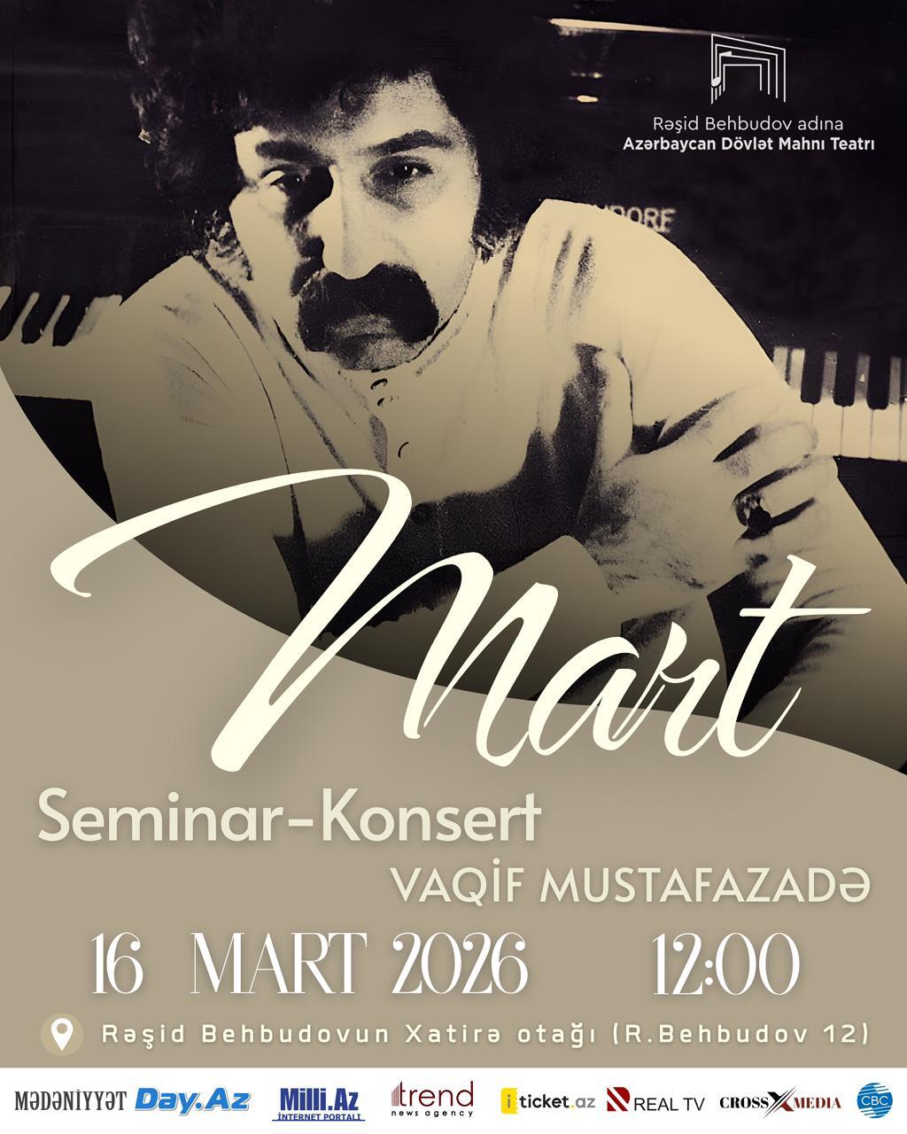 Rəşid Behbudov adına Azərbaycan Dövlət Mahnı Teatrında, Rəşid Behbudovun xatirə otağında görkəmli pianoçu və bəstəkar Vaqif Mustafazadənin anadan olmasının ildönümünə həsr olunmuş konsert-seminar proqramı təşkil olunub.