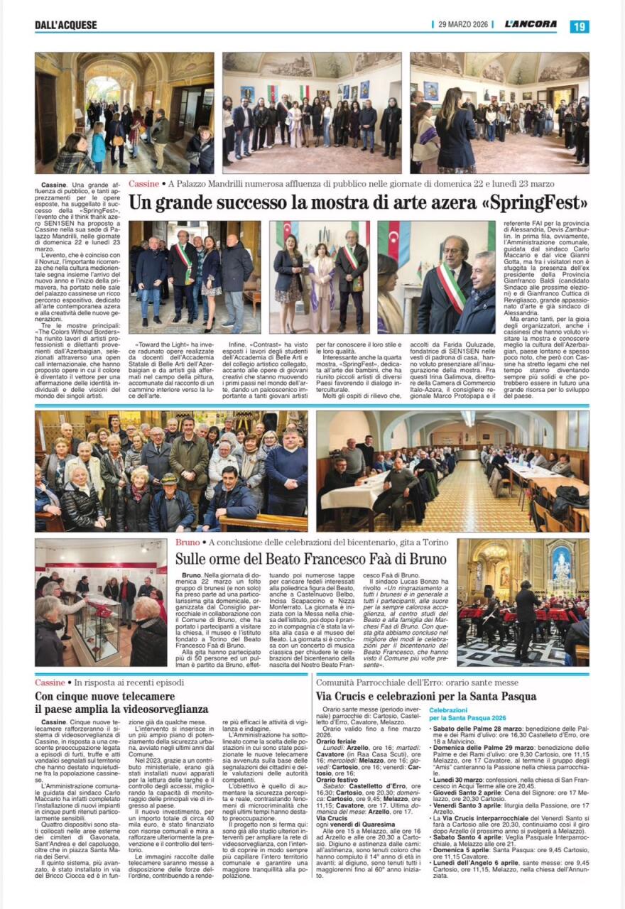 22-23 mart 2026-cı il tarixlərində Sən1Sən Beyin Mərkəzinin İtaliyanın Cassine (AL) şəhərində 17-ci əsrə aid "Palazzo Mandrilli"də yaratdığı Qalereyada növbəti sərgilər silsiləsi keçirilmişdir. Bu sərgilər "Novruz Festivalı" adı ilə Novruz Bayramına həsr olunmuşdur.