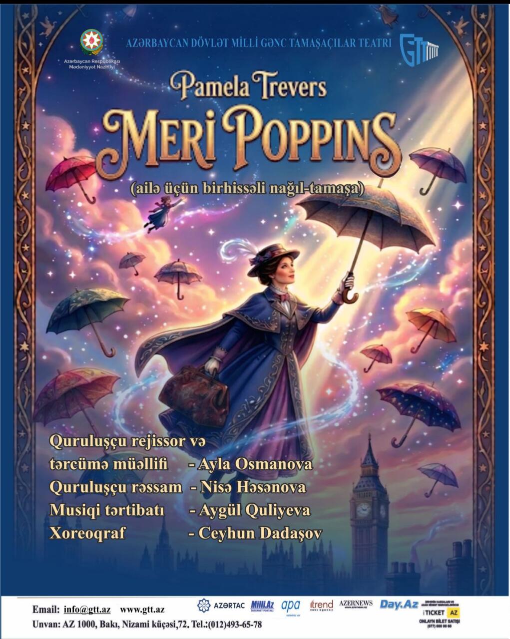 25 aprel, saat 12:00-da gənc rejissor Ayla Osmanovanın quruluşunda Pamela Treversin "Meri Poppins" nağılı əsasında hazırlanan eyniadlı tamaşasının premyerası keçiriləcək.