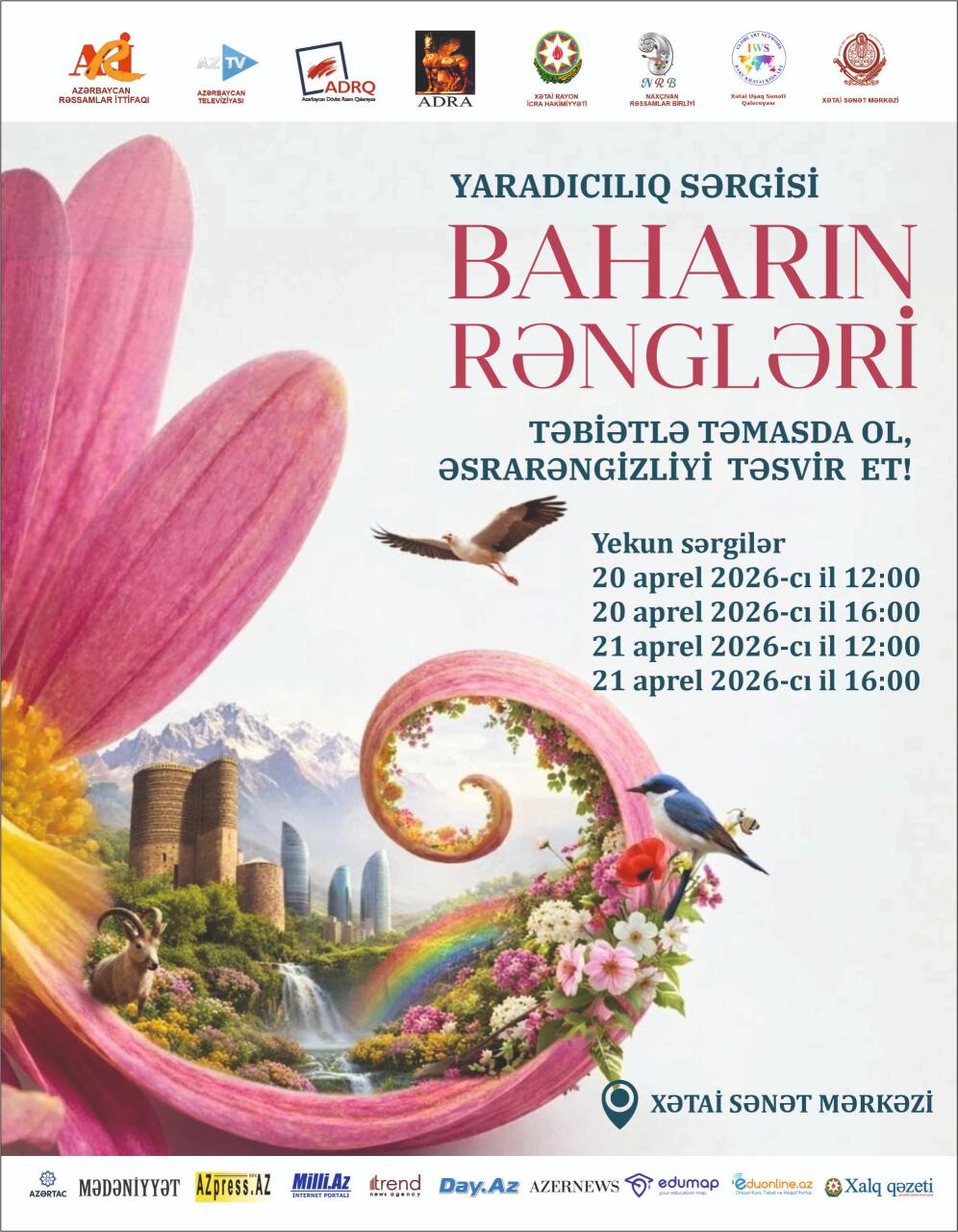 "Təbiətlə təmasda ol, əsrarəngizliyi təsvir et!" şüarı altında böyüyən gəncliyi təbiətlə təmasa sövq etmək, fərqli fəsillərdə təbiətin əsrarəngizliyini göstərmək və mühafizəsinə həvəsləndirmək məqsədi ilə 8-21 yaş arası uşaq, yeniyetmə və gənclər arasında elan olunmuş "Baharın rəngləri" adlı yaradıcılıq sərgisi 2026-cı il 20 və 21 aprel tarixlərində 12:00 və 16:00-da növbəli şəkildə Xətai Sənət Mərkəzində açılacaq.