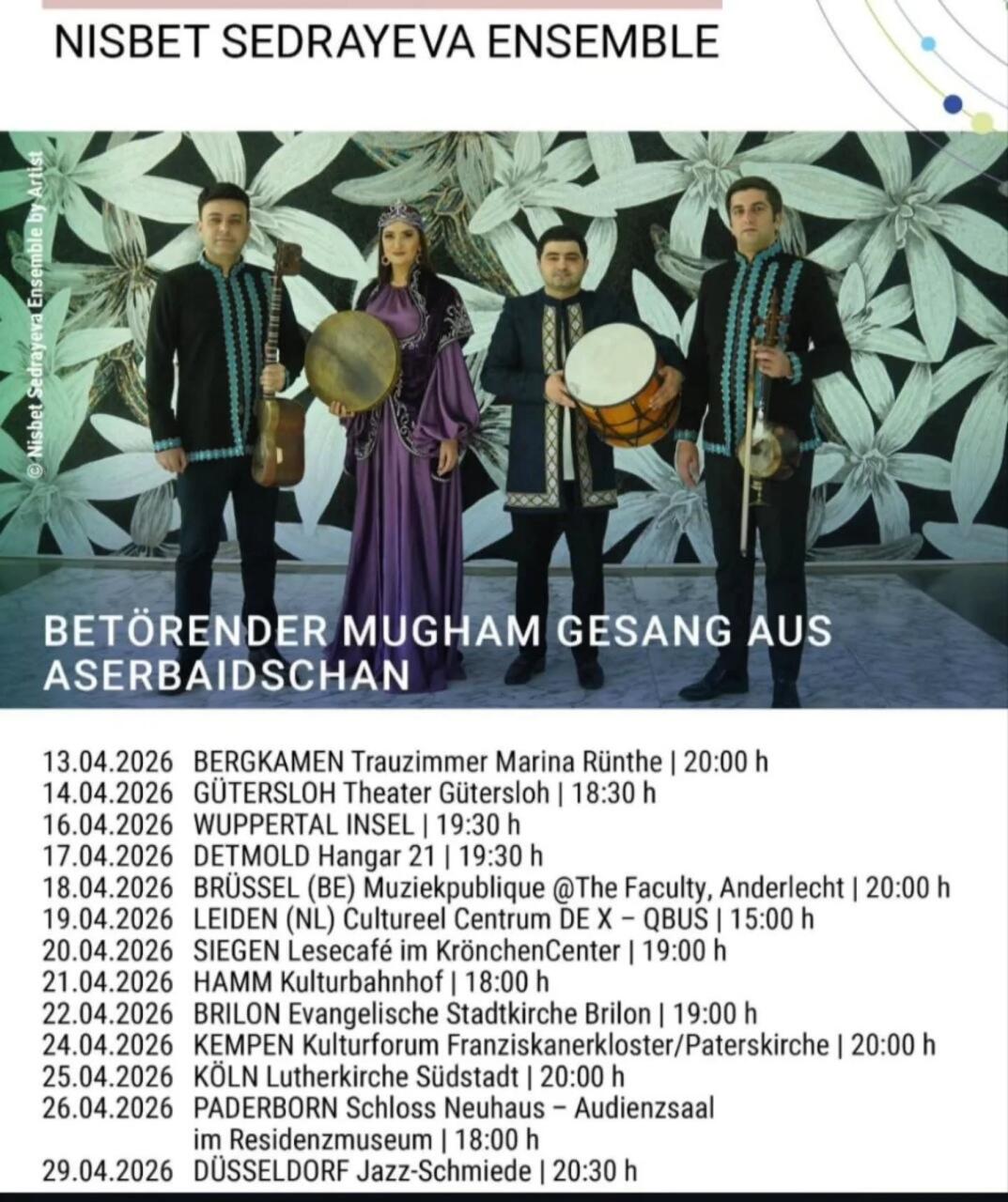 Milli.Az xəbər verir ki, konsert proqramları Almaniyanın bir neçə şəhərində olmaqla yanaşı Belçikanın paytaxtı Brüssel və Niderlandın Leyden şəhərlərində də təşkil olunacaq. Tədbirlər çərçivəsində dinləyicilərə klassik muğam nümunələri ilə yanaşı, xalq musiqisinin inciləri də təqdim ediləcək. Proqramın əsas məqsədi muğamın zənginliyini və Azərbaycan milli musiqisinin emosional dərinliyini xarici auditoriyaya çatdırmaqdır. Qeyd edək ki, bu cür beynəlxalq layihələr Azərbaycan mədəniyyətinin dünyada tanıdılması baxımından mühüm əhəmiyyət kəsb edir. Konsertlər Almaniyanın Köln şəhərində fəaliyyət göstərən "Klanqkosmos" mədəni layihələrinin təşkili platforması tərəfindən reallaşacaq.