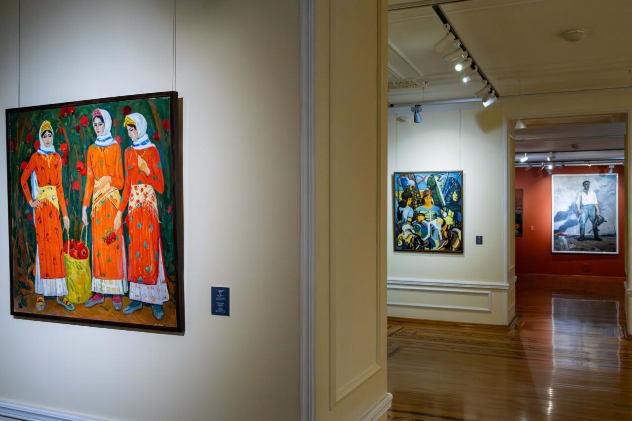 Mövzu üzrə bölünmüş zallarda rəssamın yaradıcılığına aid portret, natürmort və tematik tablolar xüsusi yer tutur. Sənətkarın yaradıcılığının ilk mərhələsi İkinci Dünya müharibəsindən sonrakı illərə təsadüf edir. Sərgi ekspozisiyasında nümayiş olunan "Qəhrəmanın qarşılanması", "Axırıncı alman", "Pambıq yığımı" kimi əsərlərdə onun fərdi üslubu və bədii axtarışları aydın şəkildə izlənilir. 1950-ci illərdən etibarən isə portret və məişət mövzularına müraciət edən rəssamın "Hüseyn Qafarovun portreti", "Eyvan", "Bakı", "Balaca köməkçi" və "Ailə sevinci" kimi əsərləri ekspozisiyada xüsusi yer tutur və yaradıcılığında yeni mərhələnin başlanğıcını əks etdirir.