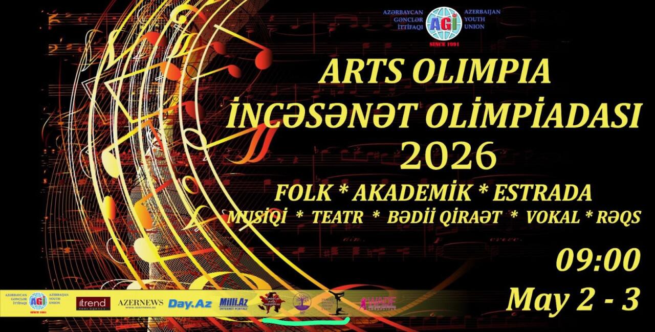 2-3 may 2026-cı il tarixlərində Bakı şəhərində irimiqyaslı mədəni layihə - Arts Olimpia / İncəsənət Olimpiadası 2026 keçiriləcək.