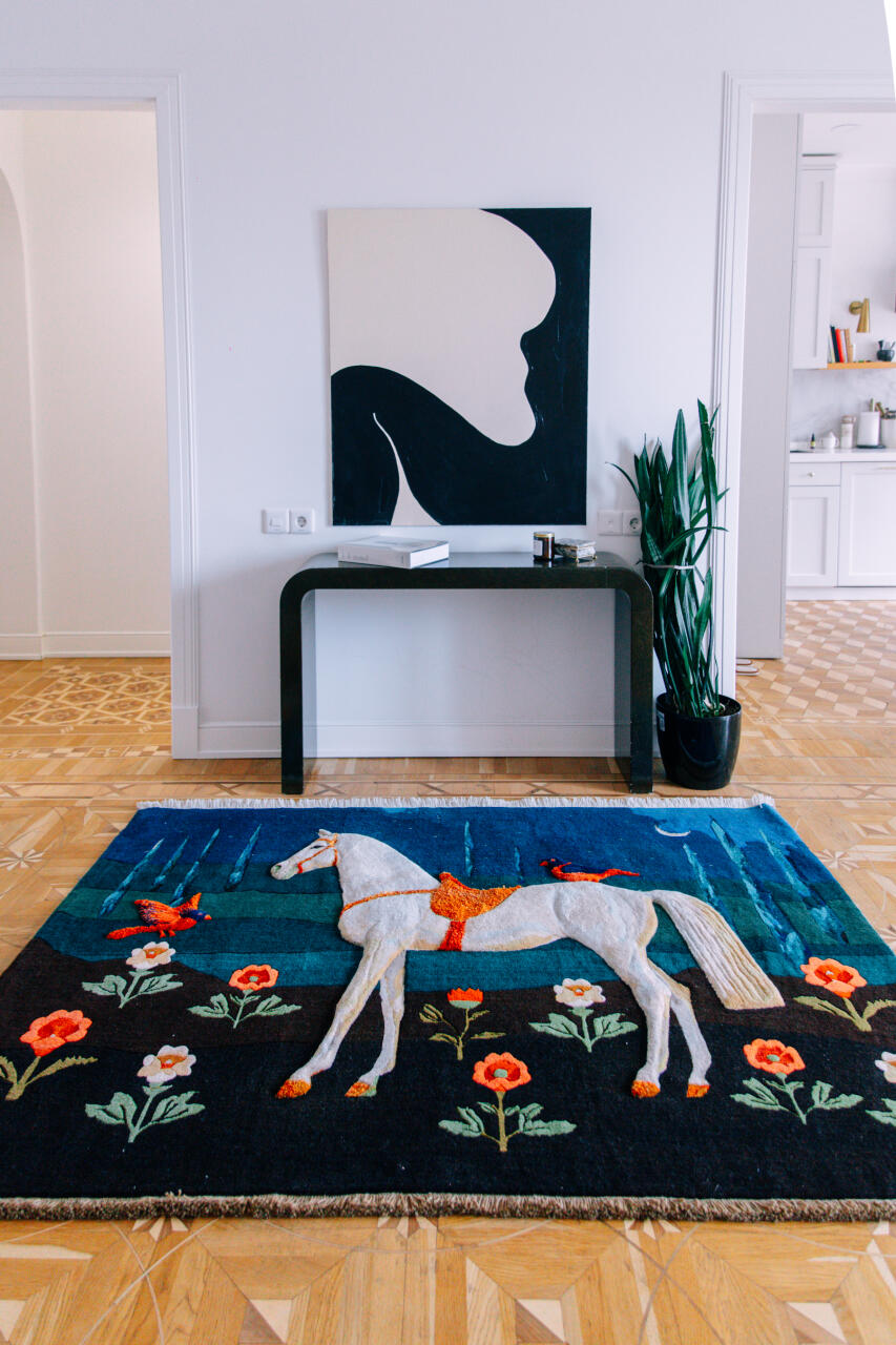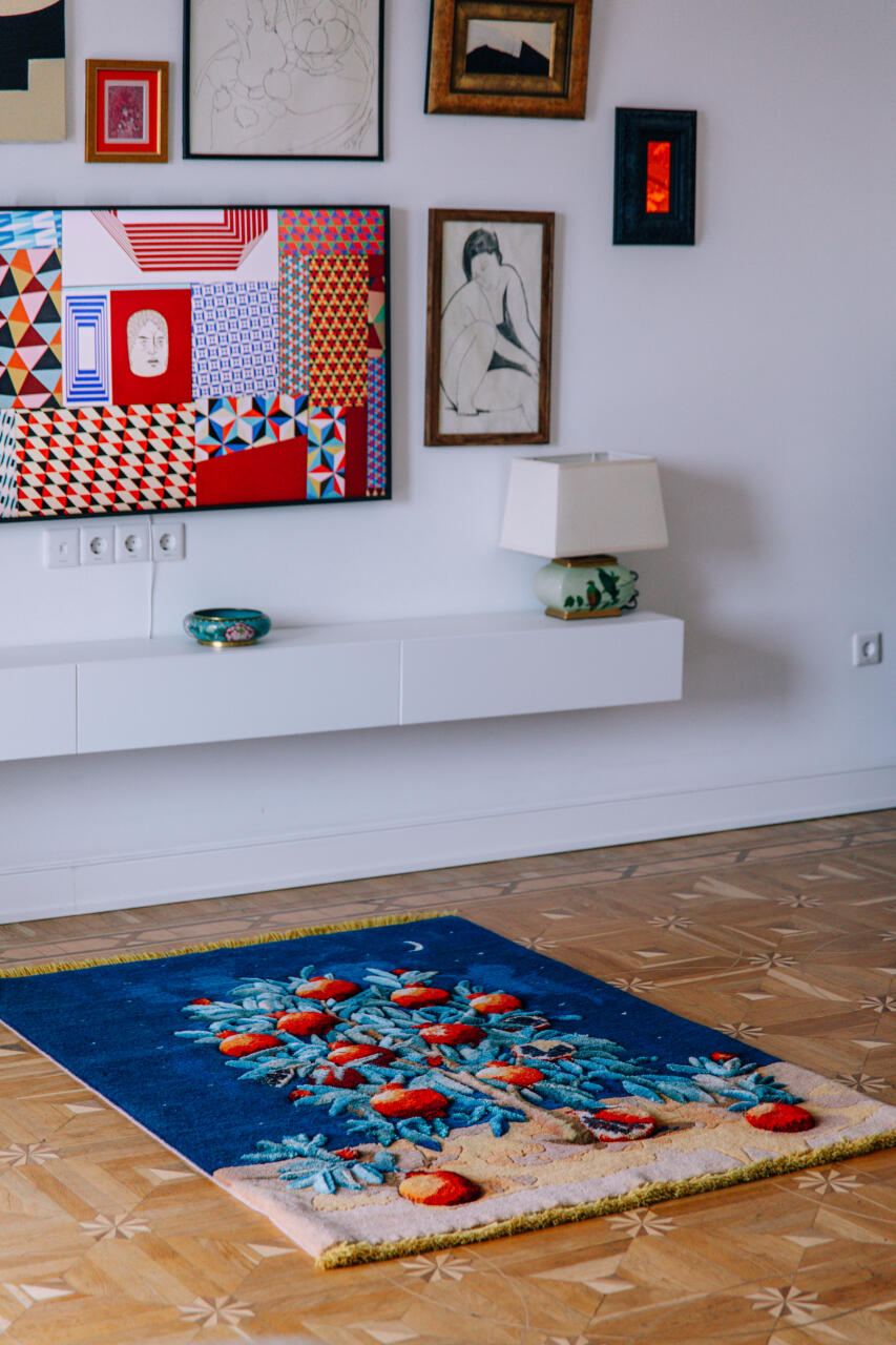 Fərid Rəsulov ənənəvi əl toxumasının struktur tamlığını, təbii yun və bitki boyası texnikalarını qoruyub saxlasa da, genişlənmiş rəng sahələri, qəsdən yaradılmış məkan aydınlığı və müasir ritm vasitəsilə kompozisiyanı yenidən tənzimləyir. Nəticə nə keçmişin sadə bərpası, nə də sadəcə abstraksiya xatirinə edilən bir işdir. Əksinə, hər bir xalça zamanın kəsişmə nöqtəsinə çevrilir.Simvolik ağ at kinetik enerjiyə çevrilir, nar gecənin tacı kimi təkamül edir, pələng həm keşikçi, həm də metafor kimi ortaya çıxır. Sadələşdirmə, gücləndirmə və xromatik kontrast vasitəsilə Rəsulov ornamenti arxa plandan çıxarıb baş qəhrəmana çevirir. Beləliklə, xalça özünün dekorativ sənət kimi tarixi kateqoriyasını aşır. O, mədəni yaddaşın daşıyıcısına və şəxsiyyətin inkişaf edən platformasına çevrilir.